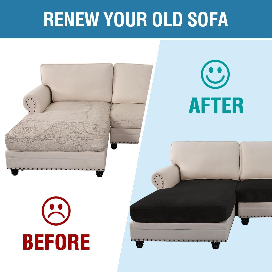- INCREDIBLY COMFORTABLE VELVET: Products passed GLOBAL RECYCLED STANDARD certificate.This innovated stretch sofa slipcovers are constructed with 3 PIECES,including 1 Chaise cover and 2 individual cushion covers. Crafted from luxurious velvet plush fabric, feature thick, soft, smooth, anti-wrinkle, no fading, durable as well as highly stretch. Protect your cushion furniture from daily wears and tears, stains, kids, scratches from pet claws, dogs or accidental spills
