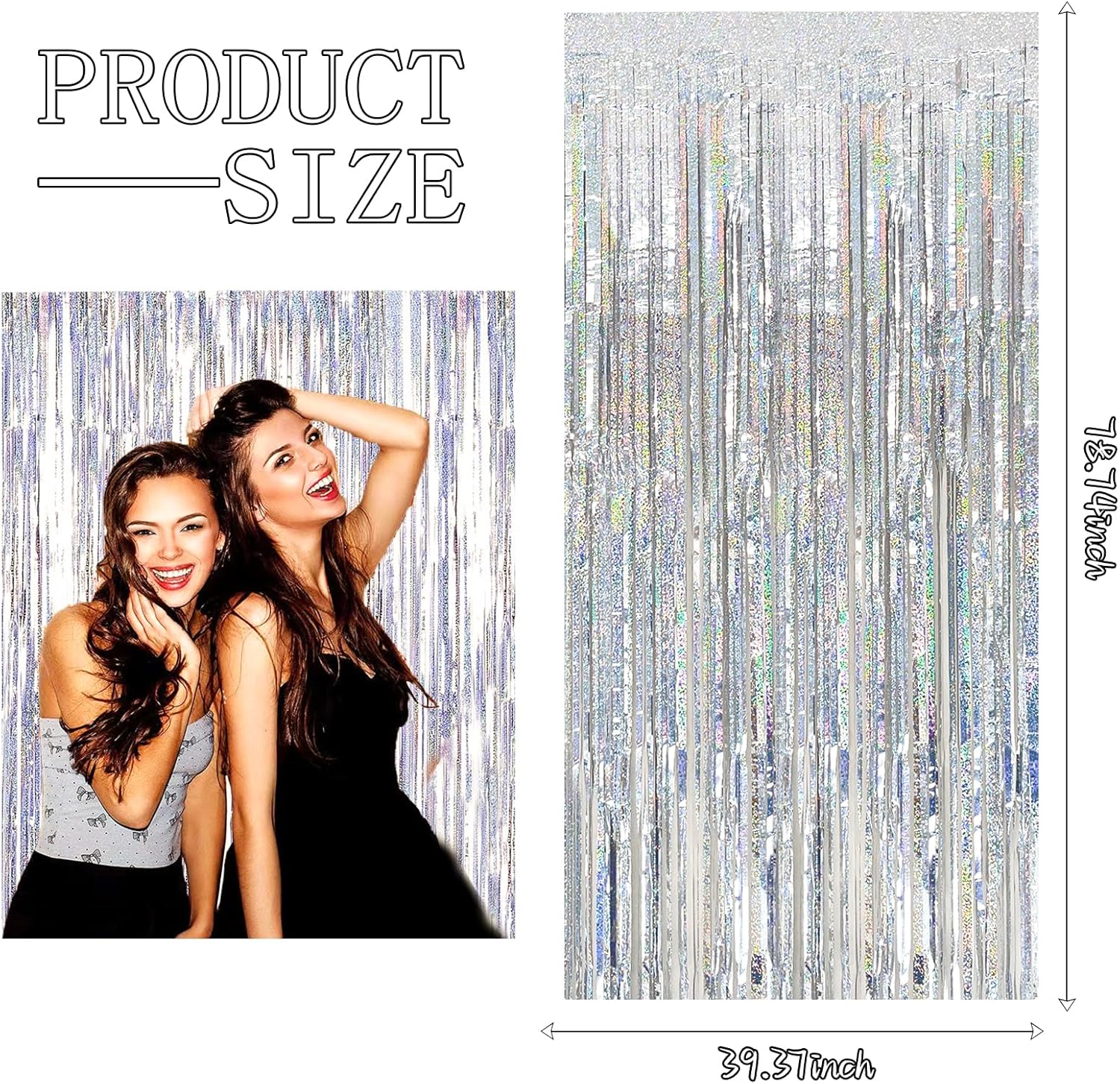 - Disco Party Decorations:3 packs of foil fringe curtains, the size of the foil curtain is 3.28 ft x 6.56 ft.It's long enough to fit any occasion. Please do not stick the foil curtain on uneven or stained walls to prevent it from falling off.