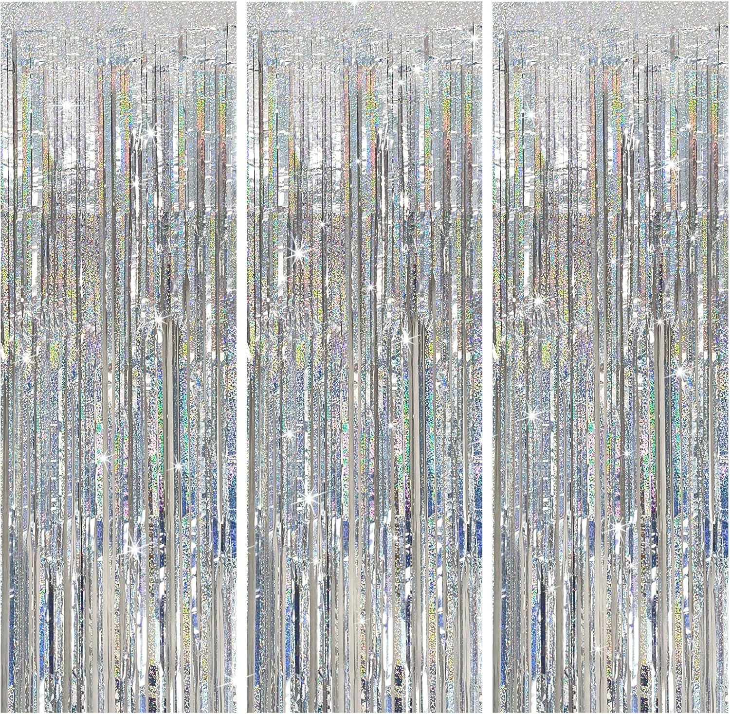 3 Pack Silver Backdrop Curtain Party Decorations Foil Fringe Backdrop Silver Tinsel Streamers Birthday Bachelorette New Year Christmas Wedding Baby Shower Disco Party Decorations