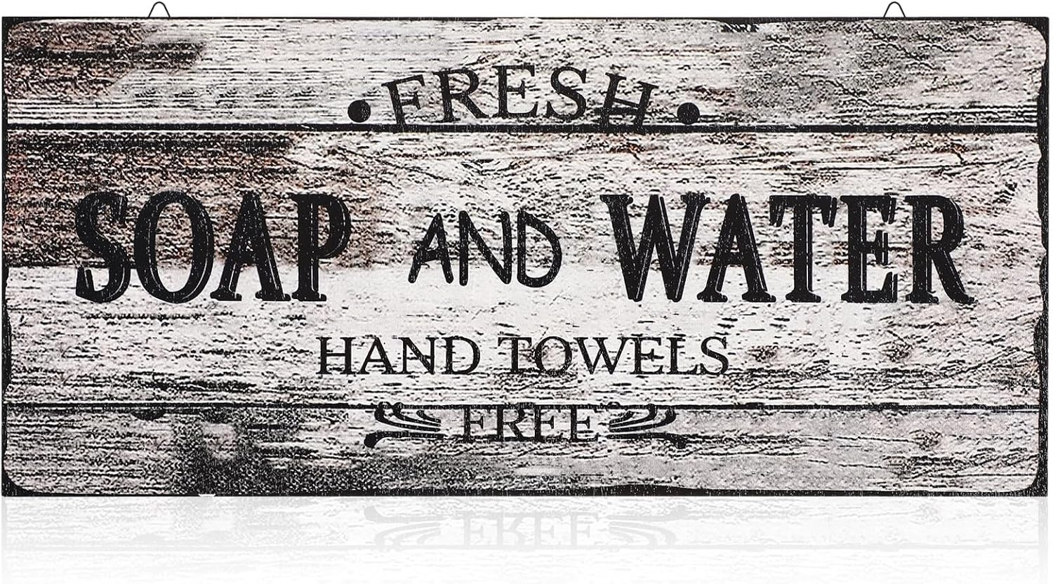 Jetec Farmhouse Bathroom Decor, Fresh Soap and Water Sign Vintage Bathroom Wood Plaque Rustic Wall Decor for Wall Art Decoration Restroom(Novel)