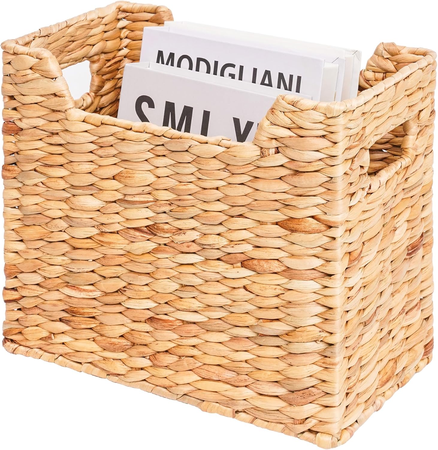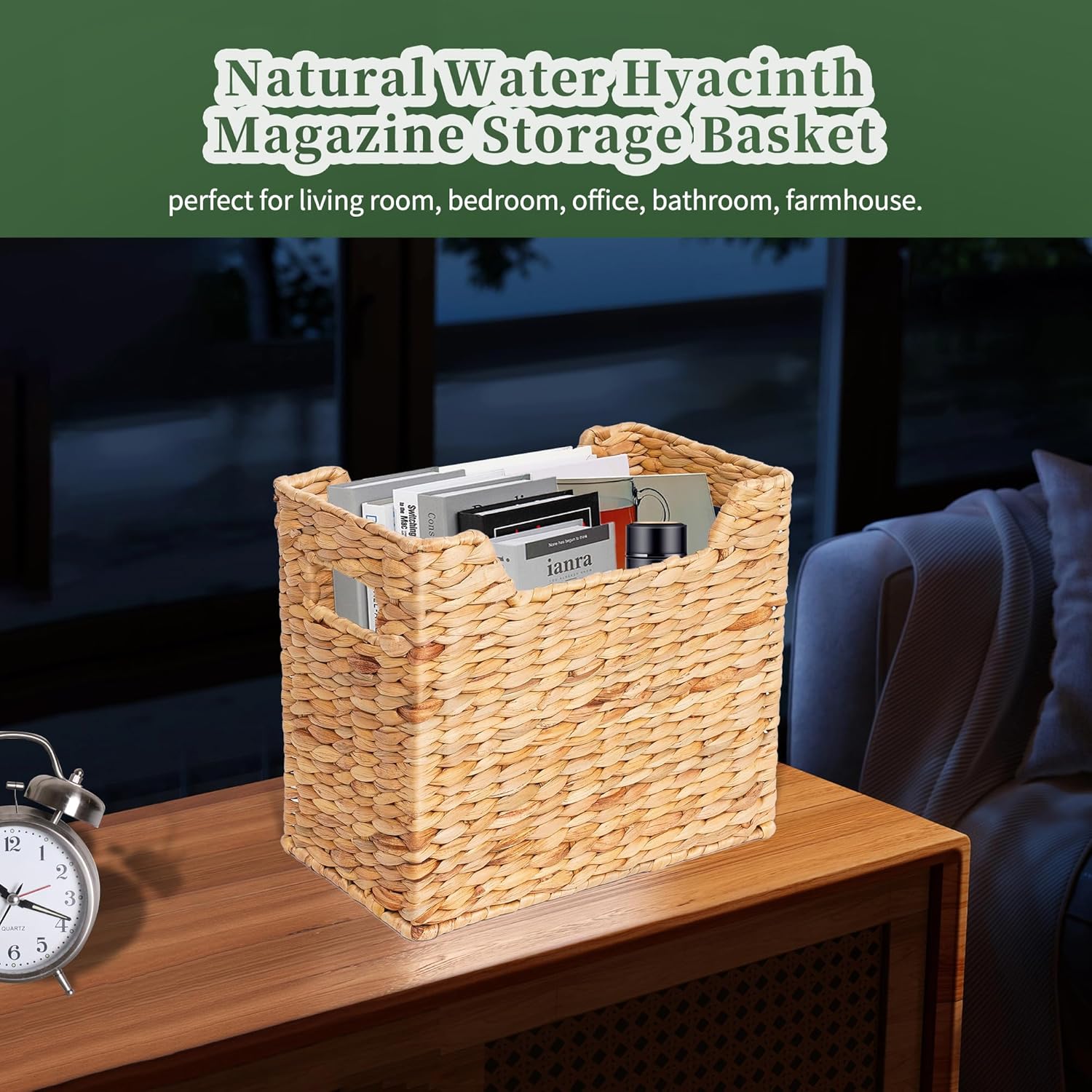 Magazines Holders, Handwoven Magazine Basket for Bathroom, Water Hyacinth Wicker Magazine Rack for Books, Files, Newspapers, Rectangular, 14.2 x 11.4 x 6.7 inch