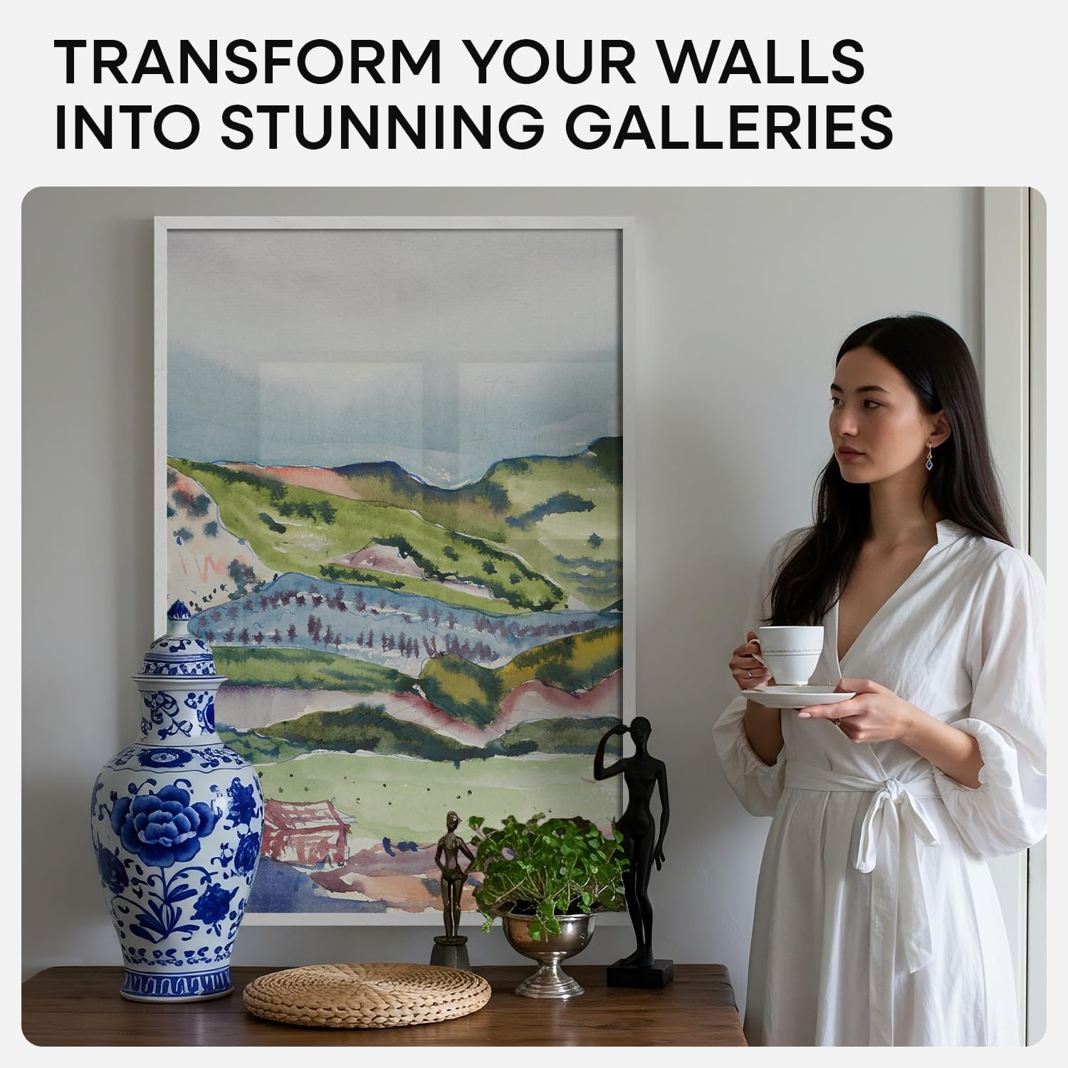 - REAL WOOD. ELEVATED FINISH. UNDENIABLE STYLE. Unlike flat white plastic, this painted oak frame brings depth, weight, and quiet luxury to your space..