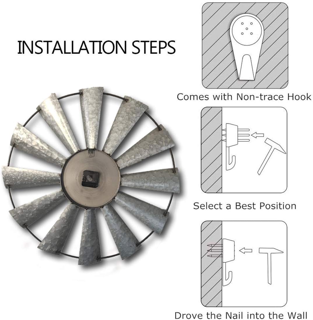 Mrocioa 30inch Windmill Distressed Metal Wall Clocks Rustic Large Decorative Clock Oversized Farmhouse Decor,Non Ticking,Battery Operated
