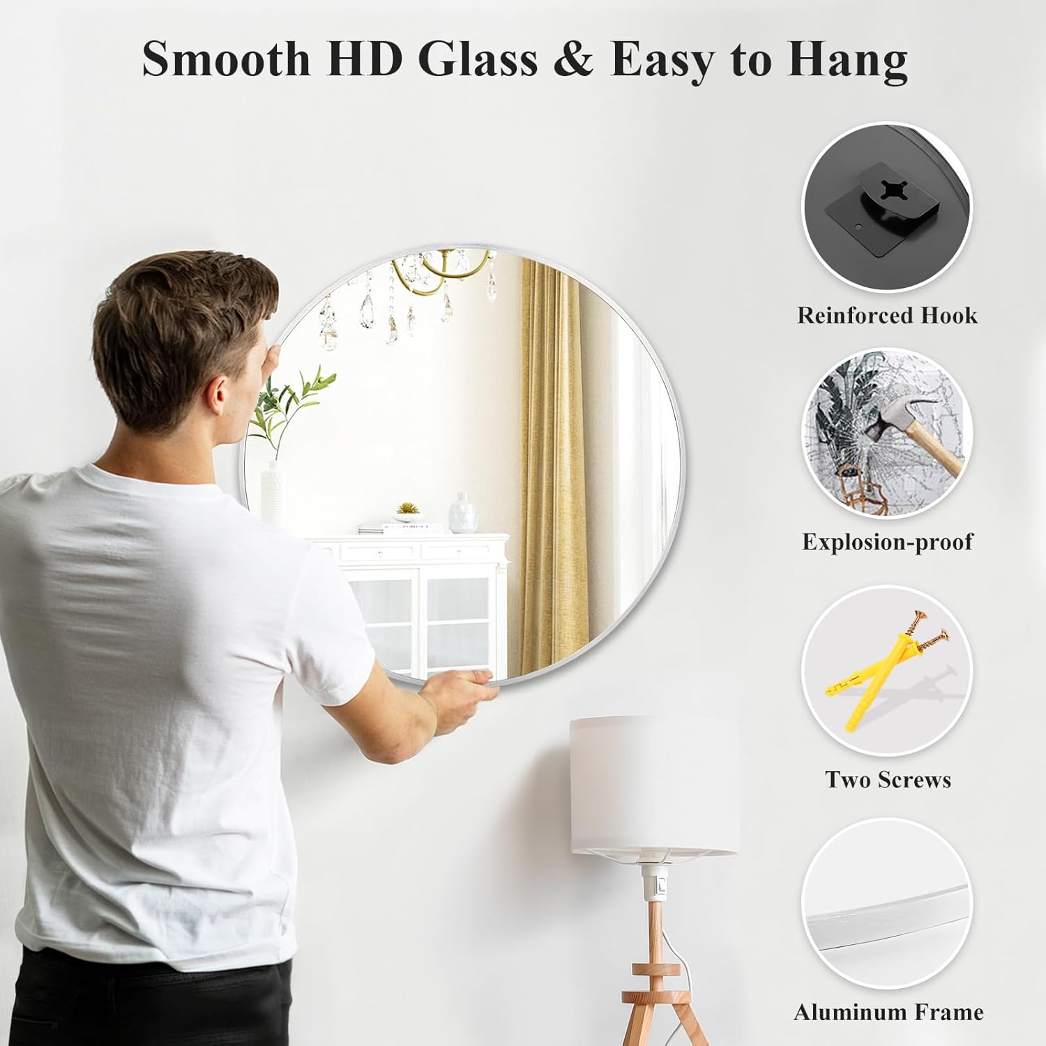 - Install is a Breeze - With the easy-followed instruction and complete accessories, you can install the modern mirror in a short time. Whatโs more, this circle mirror adopts explosion-proof glass, safe, waterproof and moisture-proof, that can use for long time and will not hurt your children