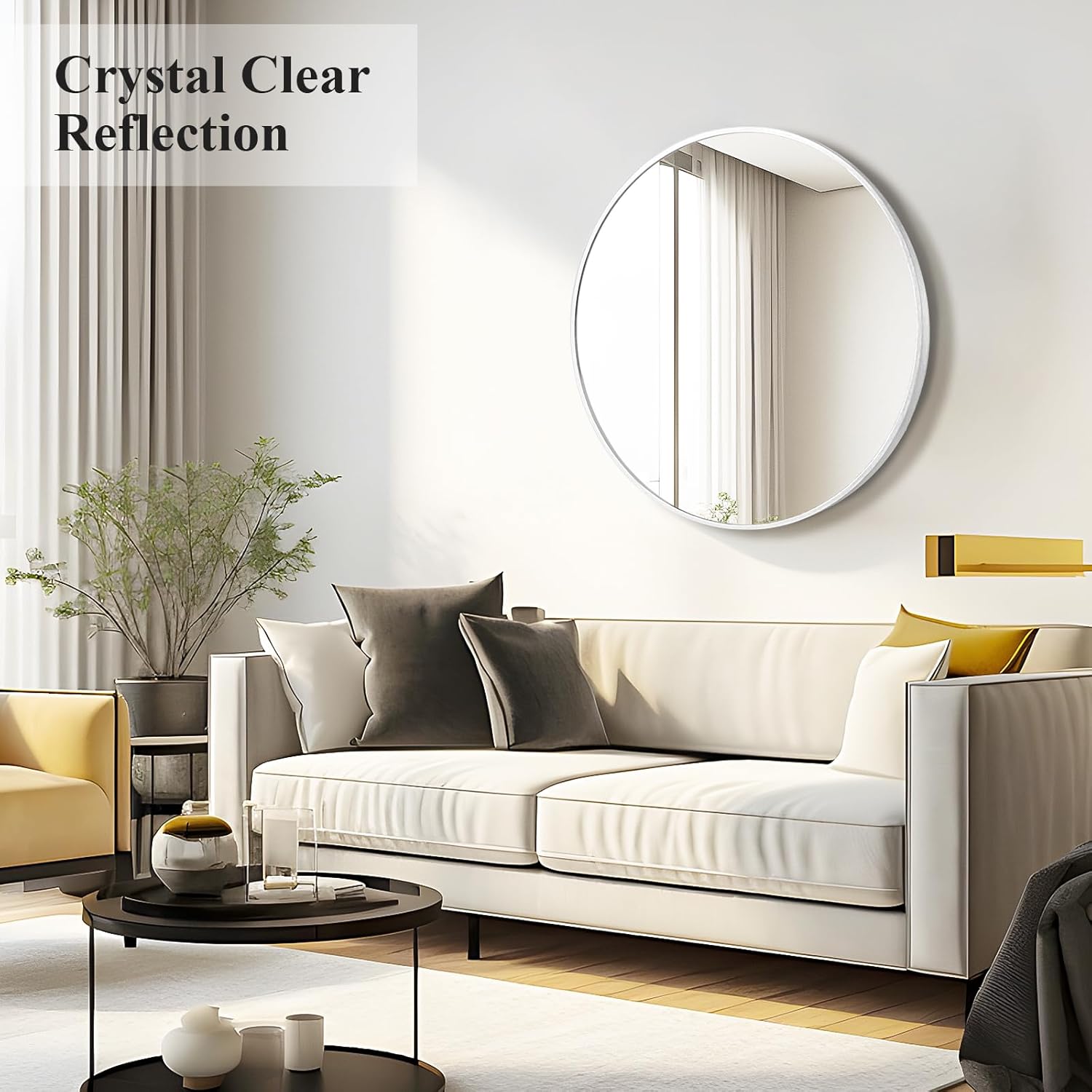Fabuday Silver Round Mirror 30 Inch - Big Circle Mirror for Bathroom, Living Room, Hallway, Entryway, Matte Aluminum Frame Circular Mirrors for Wall Decor