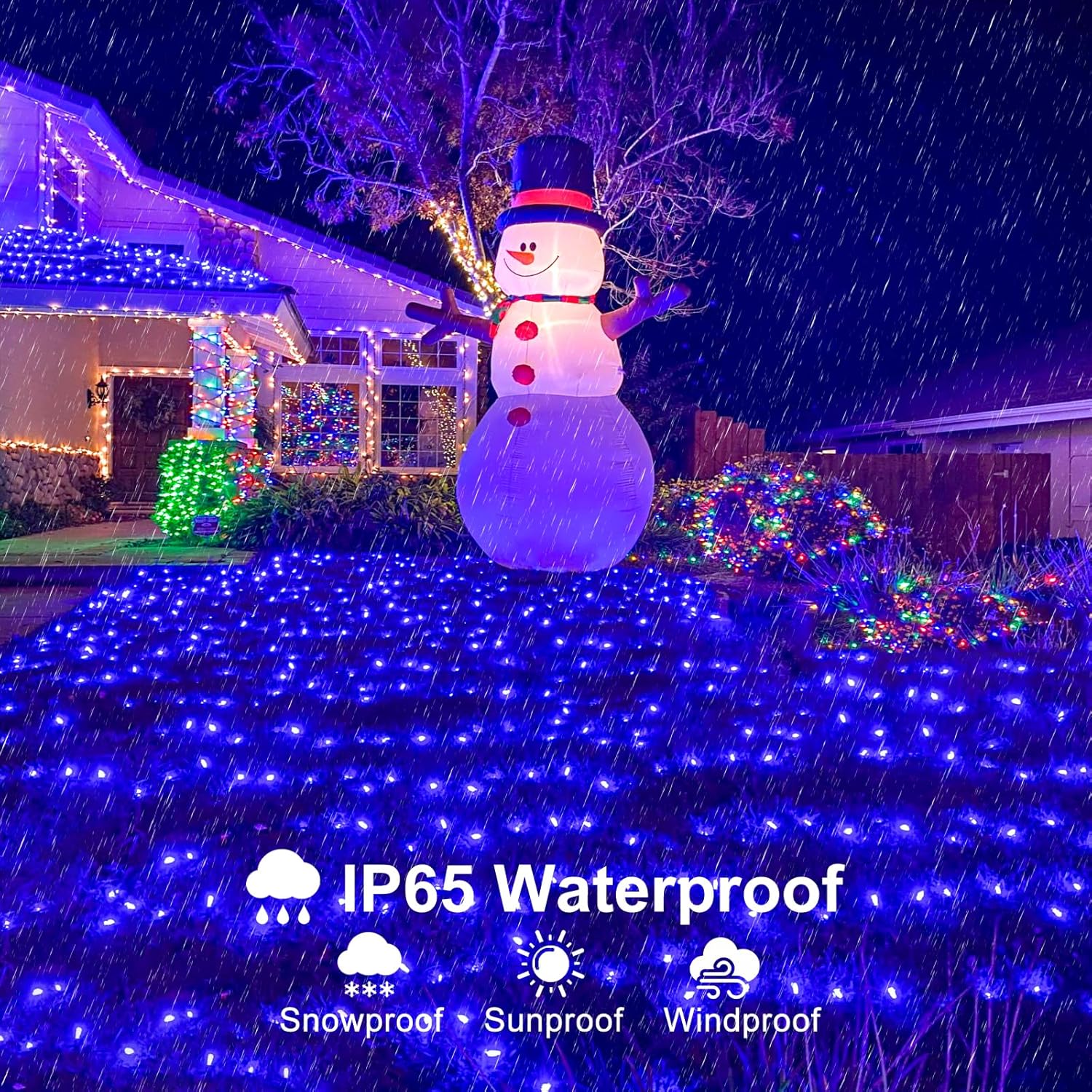 2 Pack Christmas Lights Outdoor, Total 200FT 600LED Christmas Tree Lights with 8 Modes Waterproof, Green Wire String Twinkle Lights for Indoor Home Garden Xmas Party Holiday Decorations, Blue