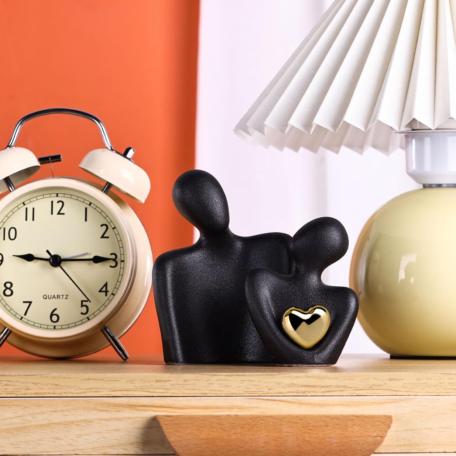 • Couples Bedroom Decor: This ceramic 'Hugging Couple Statue' embodies love and intimacy as the couple figurine shares a gaze, with a shining gold heart at the center, symbolizing a bright and precious bond. It's a mini yet impactful piece that brings a symbolic sparkle to any room, from the living room to the love office decor.