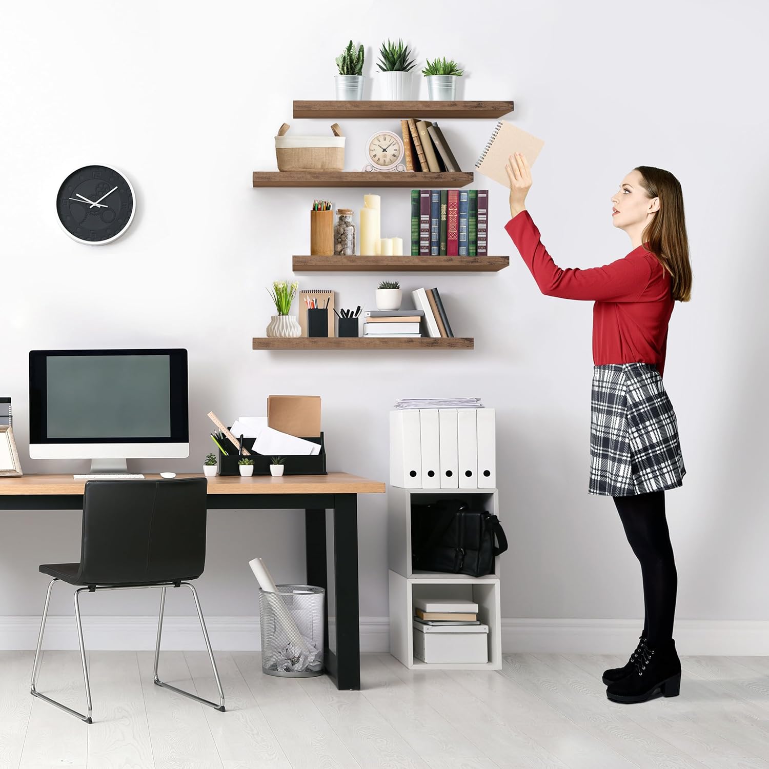 - Free Up Space in Your Home & Kitchen: Reduce clutter and highlight bedroom decor - These shelves for wall storage give the illusion of a larger space in a studio apartment, dorm room, or small living quarters - Easily modify your floating wall shelves to fit your needs - Display succulent plants, collectibles, trophies, photos, frames, and books