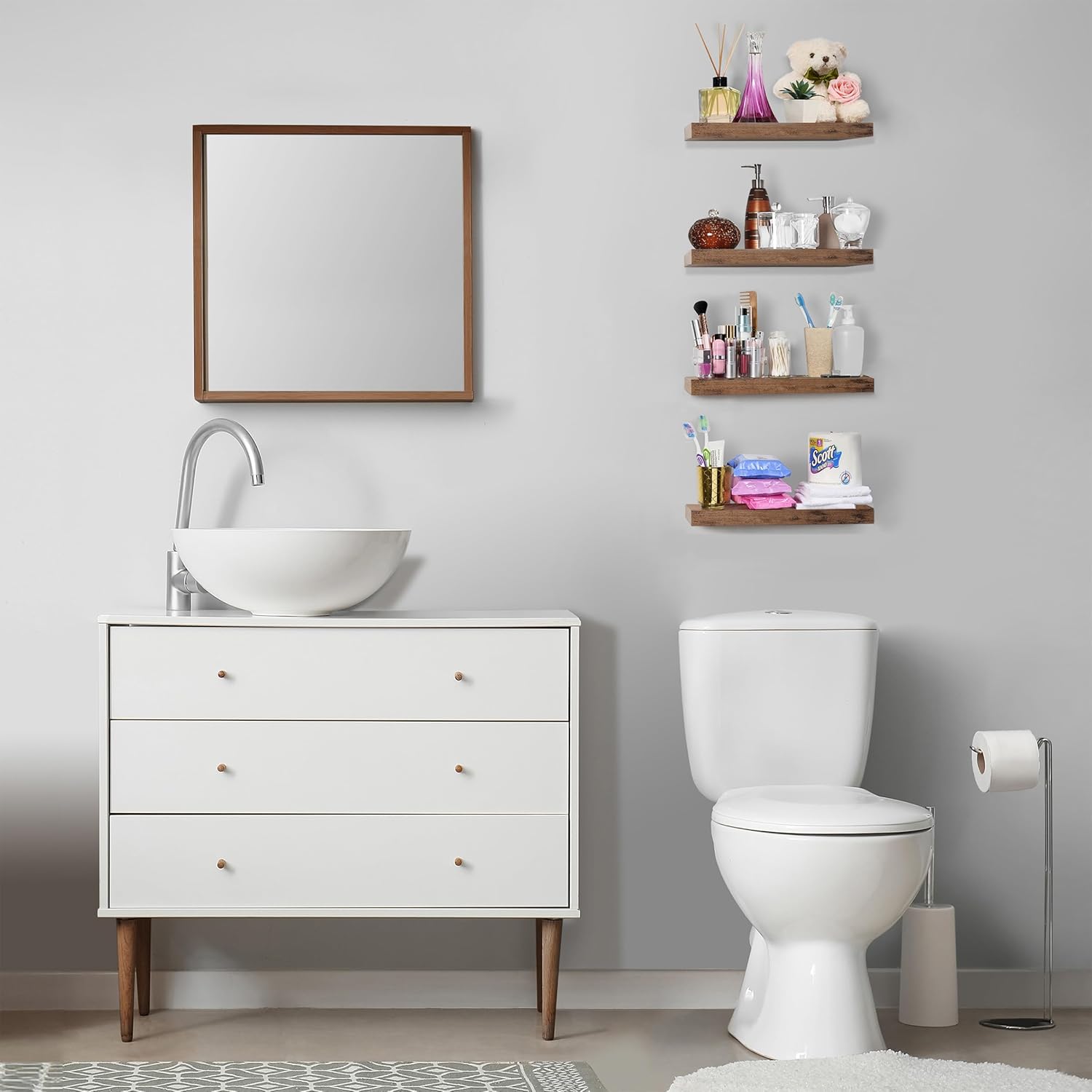 Sorbus Floating Shelves for Wall, Bathroom Shelves Wall Mounted for Kitchen, Bedroom, Living Room, Bathroom Storage, Over Toilet, Hanging Book Shelf for Wall Home Decor (Mahogany, 4 Pack)