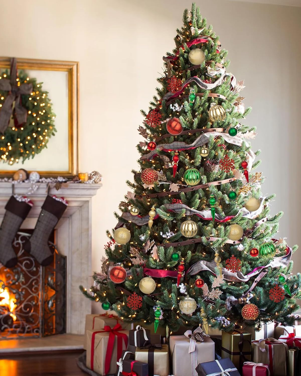 - COMPLETE 92-PIECE SET β Each Christmas ornament set includes 92 carefully selected pieces in various sizes and designs, including classic round balls, intricate finials, glittery snowflakes, and mini baubles. This complete collection allows you to decorate your entire Christmas tree with a perfectly coordinated look