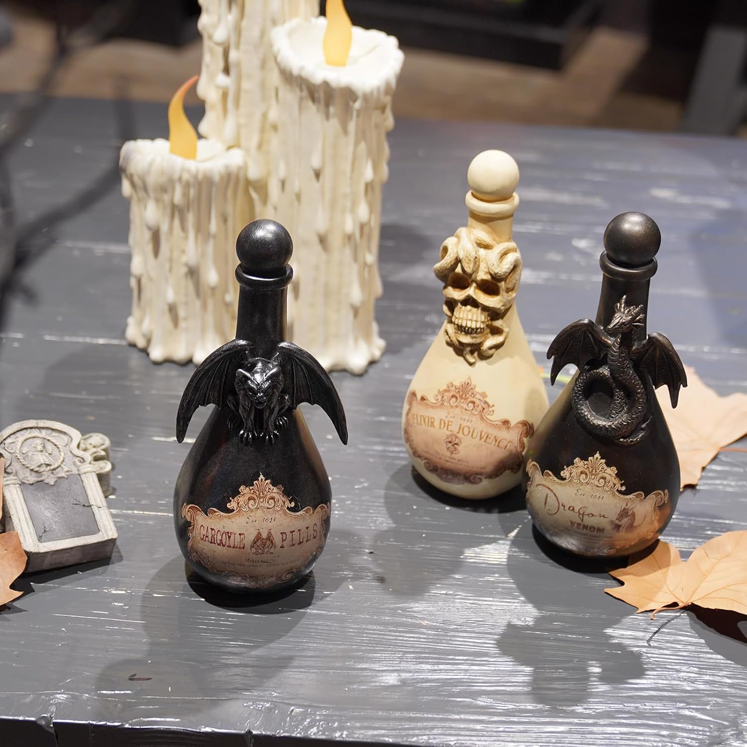 - 【Halloween Decoration】The bottles had a bad dragon on top. It's very typical of the Gothic style. This sculpture cannot store liquid. It is strictly decorative