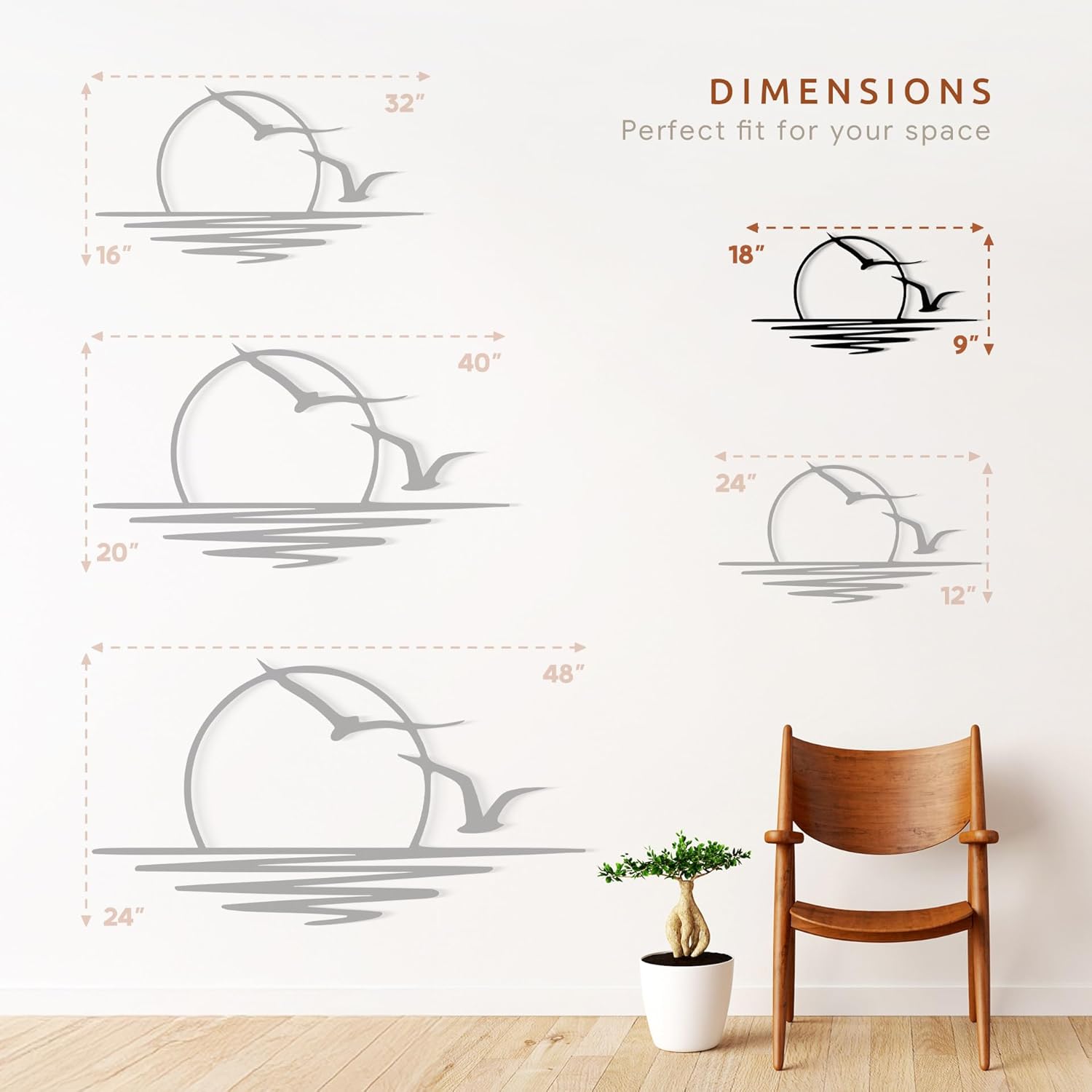 Wita Home Sunset with Seagulls Metal Wall Mounted Art, Handcrafted Metal Home Decor with Static Powder Coating, Eye-Catching Addition to Living Room Decor, Modern Beach Decor for Indoor and Outdoor Spaces, Perfect Housewarming Gift (18 x 9 inches)