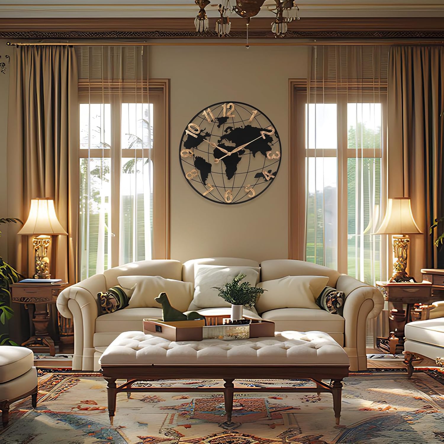 - 【Aesthetic World Map Design Concept】To craft a visually stunning and captivating 30 inch large world map wall clock,we incorporated geographical latitude longitude lines and continental tectonic plates into our design concept,aiming to convey the Earth's natural beauty through metal lines and forms:It’s not only a piece of exquisite artistic elegance but also an artwork with educational value.
