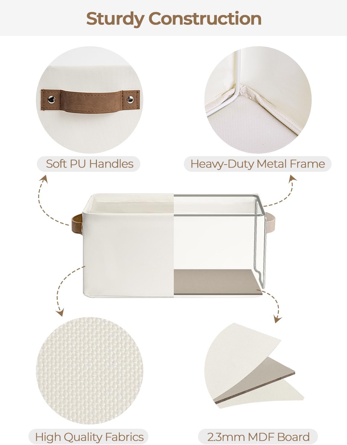 • Premium Materials: The storage basket is crafted from durable, thick fabric and features wide PU leather handles with rivet reinforcement, ensuring both strength and ease of movement to any desired location.