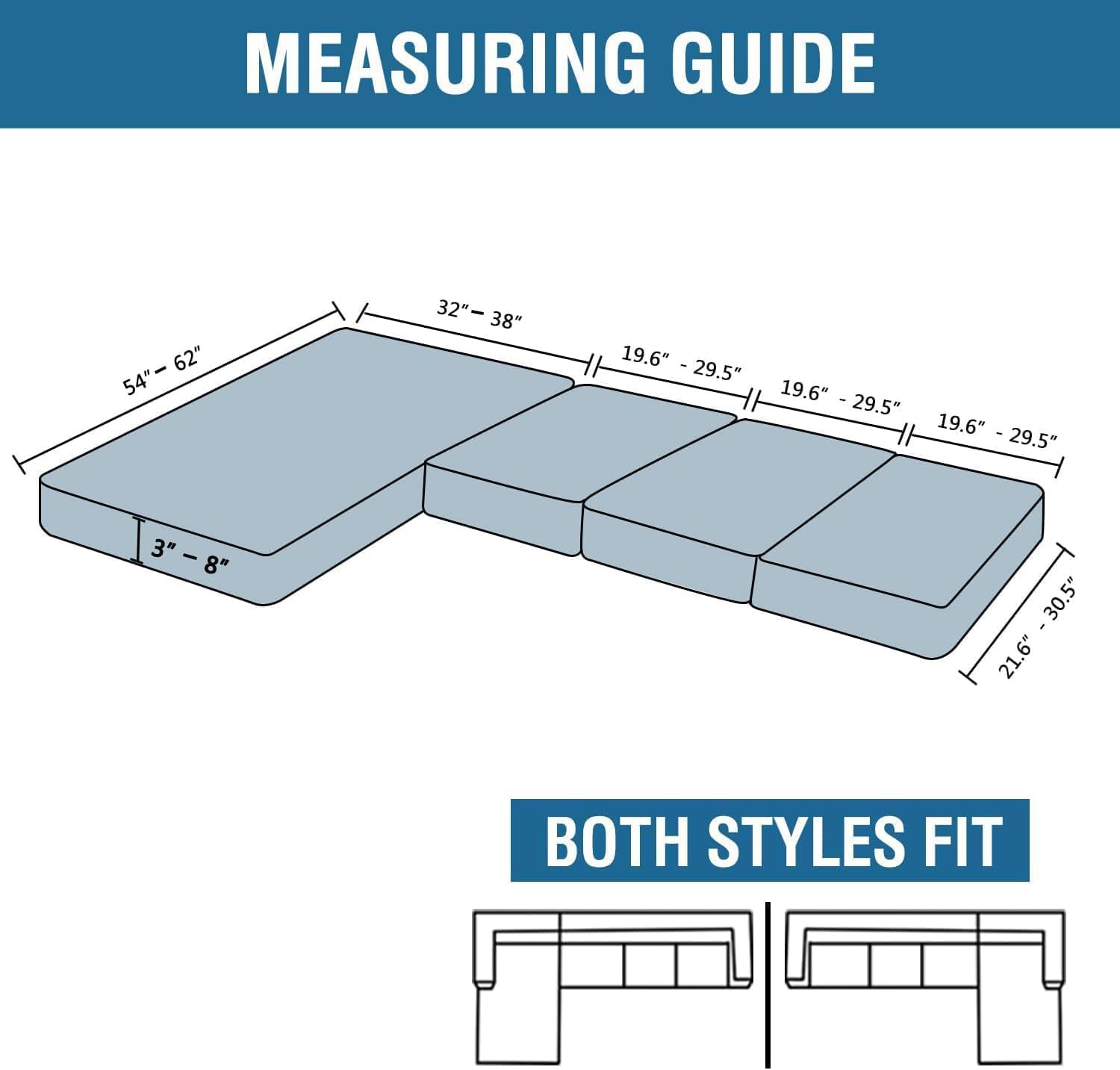 - UPGRADED THICKER: Each individual cushion cover fits up to 19.6-29 inch width, 21.6-30.5 inch depth, 3-8 inch thickness while the chaise cover fits up to 32-38 inch width, 54-62 inch depth, 3-8 inch thickness. Feature one-size-fits-most, kindly measure before ordering