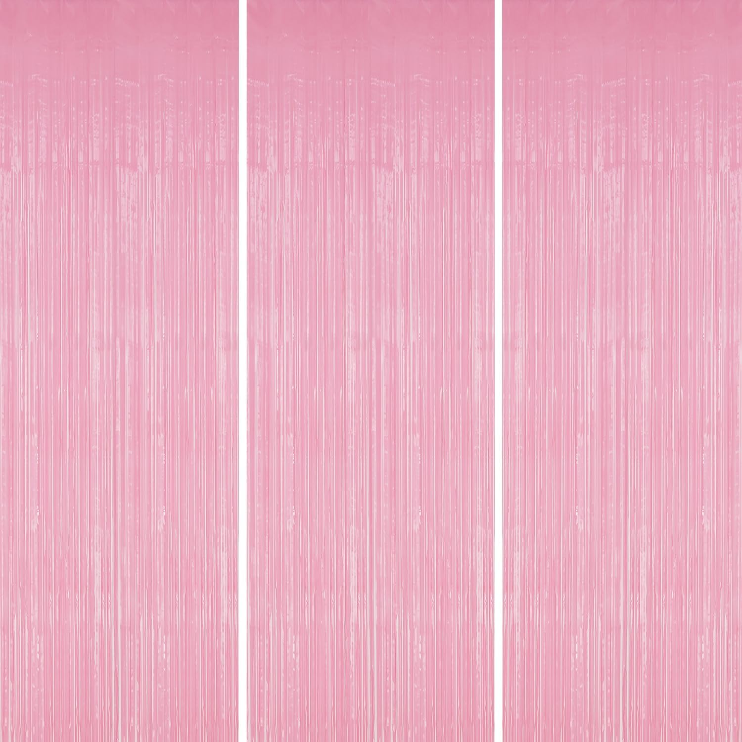 3 Pack Foil Fringe Backdrop - PastelPink Shiny Tinsel Curtains for Party Decoration/Photo Booth Props - 3.3x8.2 FT Metallic Foil Backdrop for Birthday, Wedding, Graduation, Christmas.