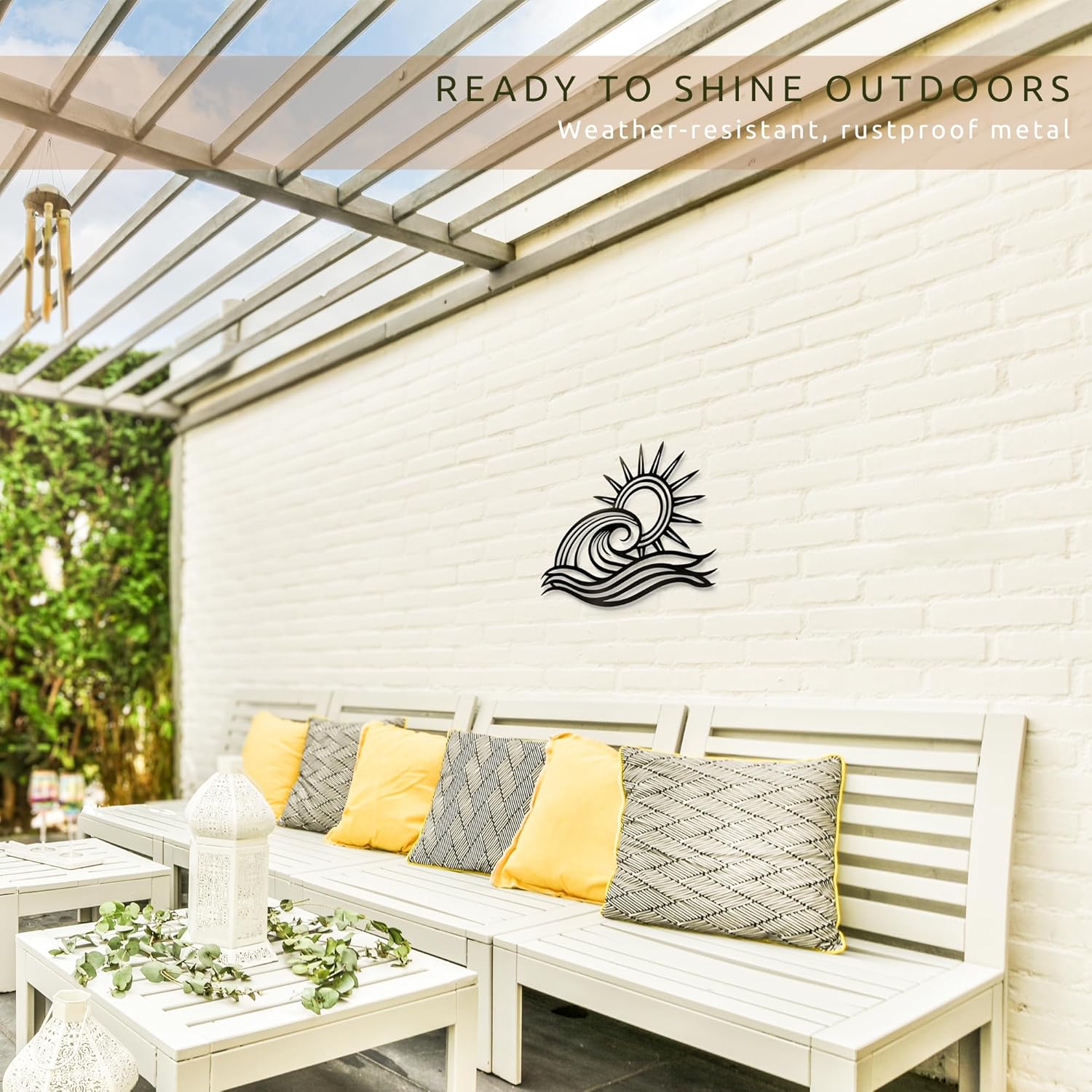 - STYLISH COASTAL DESIGN: Featuring an intricate ocean wave and sun motif, this coastal wall sculpture adds a touch of nautical elegance to any space. Its sleek, modern design complements various decor styles, making it a versatile addition to your home or garden.
