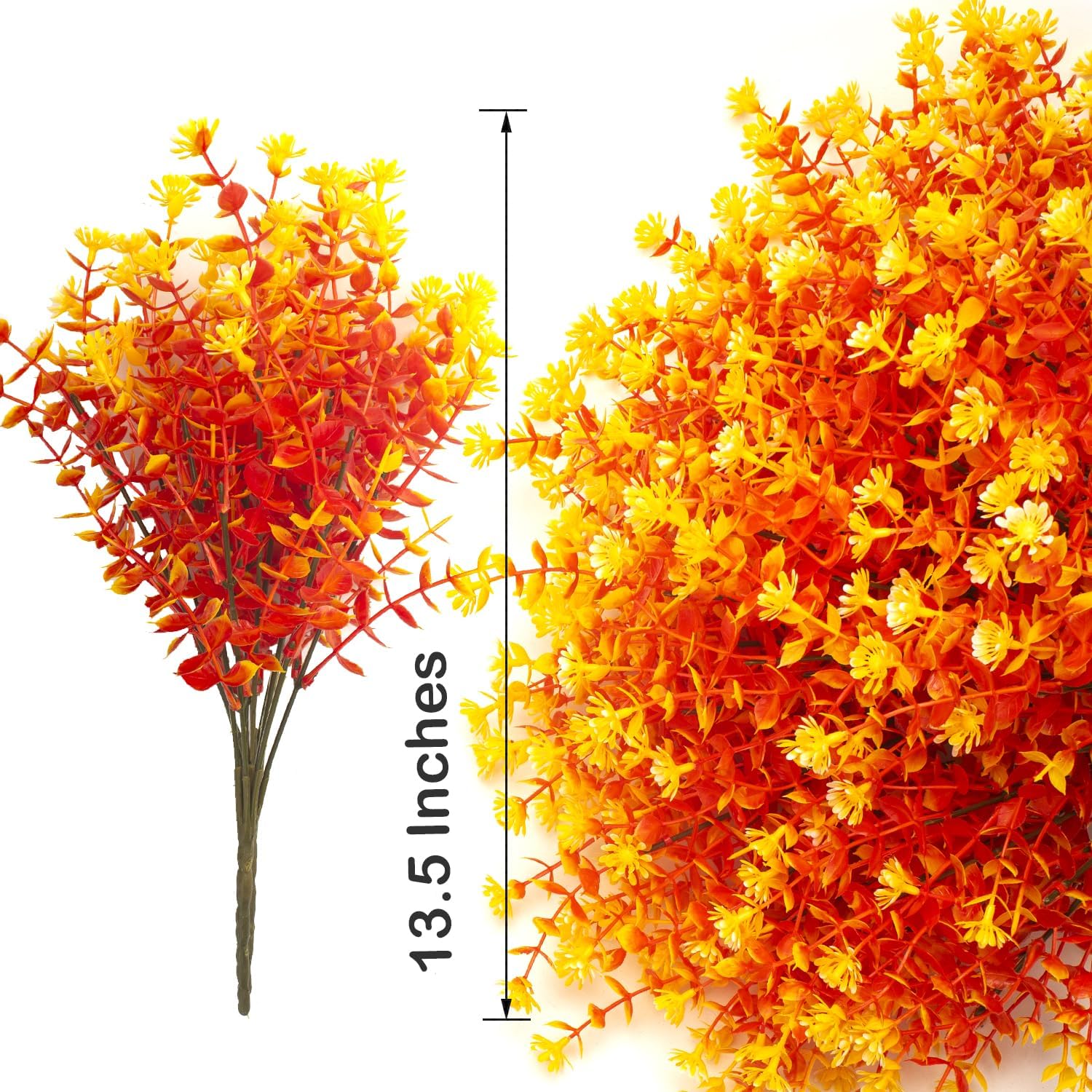 12 Bundles Artificial Fall Flowers No Fade Faux Autumn Plants, Fake Indoor Outdoor Greenery Decorations for Thanksgiving Christmas Wedding Party Home Garden Fireplace Décor (Fall Orange)