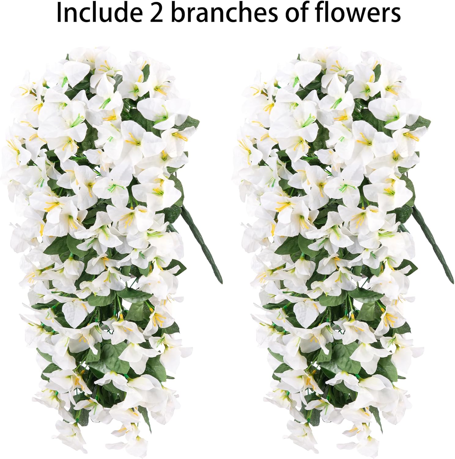 Faux Bougainvillea Artificial Flowers Plants for Outdoors Outside Decoration, 2 PCS White Fake Flowers UV Resistant Look Real Silk Long Trailing Vines for Front Door Porch Planter Patio Garden Yard