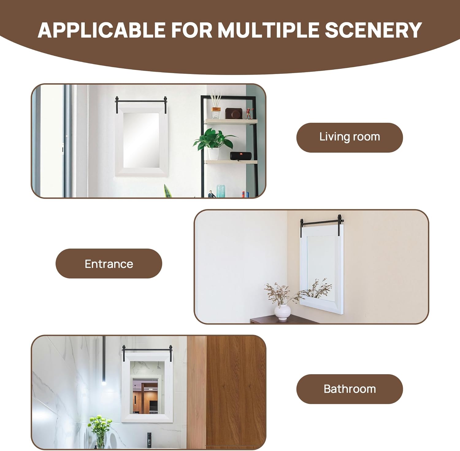 - 【Premium Solid Wood Frame】The frame of the farmhouse mirror is made of premium fir wood with oil-based paint to prevent scratches and ensure durability and resistance to moisture. The solid wood frame gives the rustic mirror a sturdy and authentic look, adding a touch of farmhouse appeal to the bathroom, living room, powder room, entryway, hallways, bedroom, dressing room, garden, courtyard, etc.