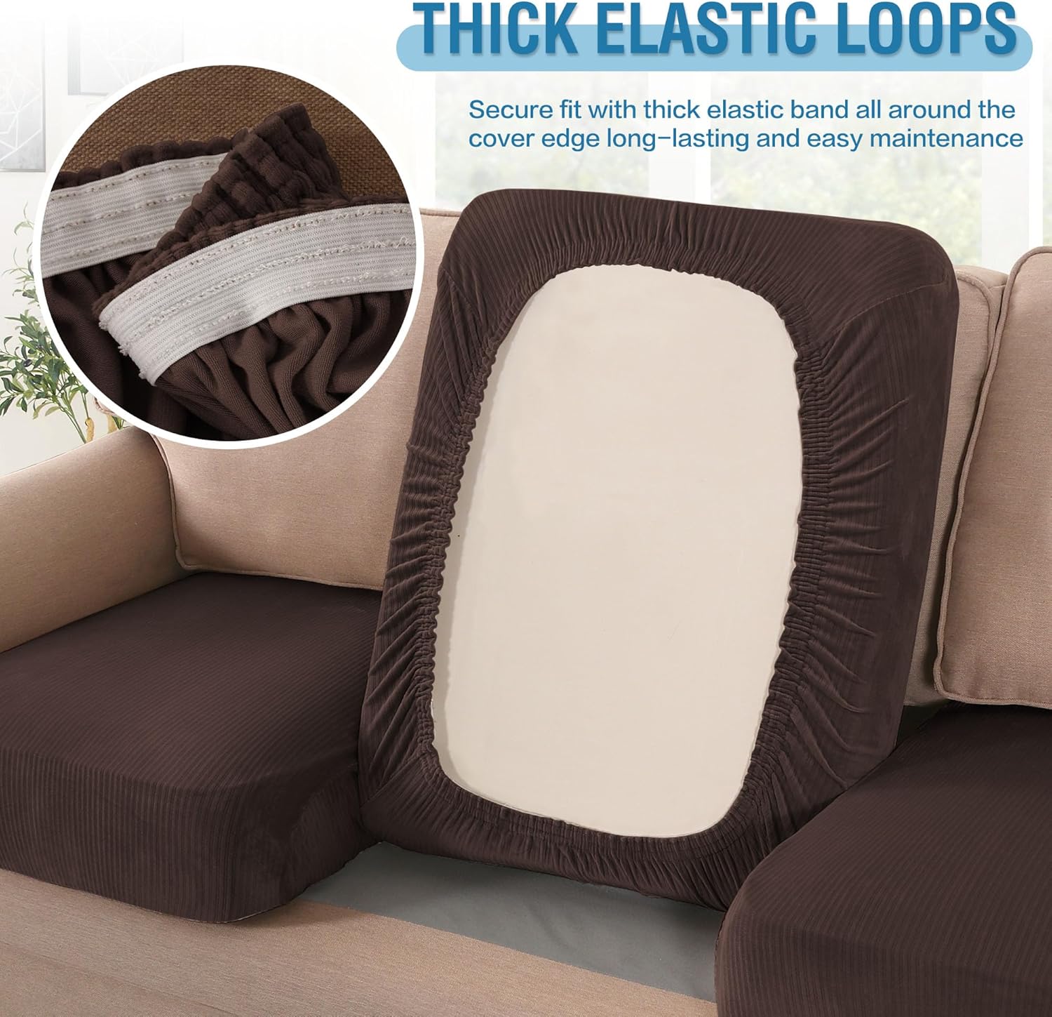 - ANY FORM FIT: Each cushion cover measures: 19.6-29.5" length, 21.6-30.5" width and 2-10" height. It's crafted from a unique extra stretchy fabric, perfect for regular square cushions, T-cushions and also L-cushions, used to cover not only the seat cushions of your sofa, but also the back cushions as long as they can be separated from the sofa
