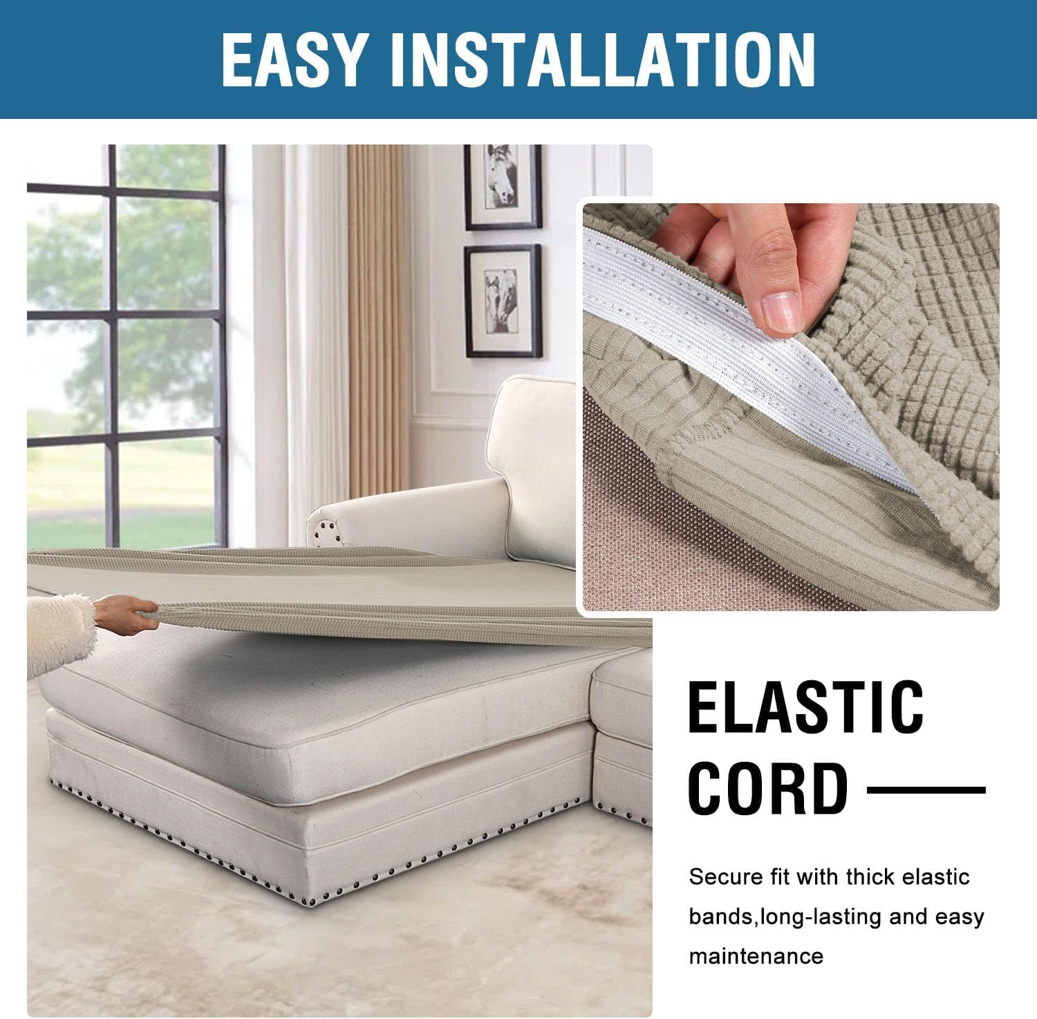 - GREAT FIT: Set of 1. This innovated cushion slipcover is crafted from durable and soft high stretch knitted jacquard fabric. Large Size Chaise Lounge Cover for Both Left/Right L Shaped Couch(fits up to 38-45 inch width, 64-72 inch depth, 3-8 inch thickness). Feature one-size-fits-most, kindly measure before ordering