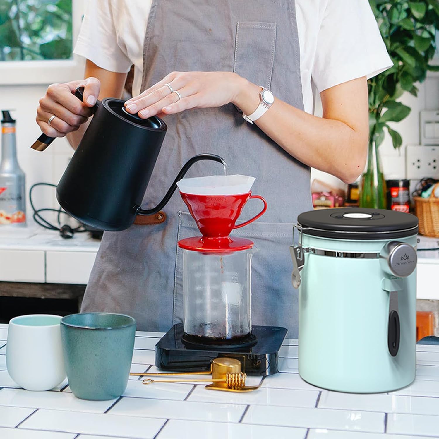 35OZ Coffee Canister for ground coffee with Date Tracker,Mint Green 304 Stainless Steel Kitchen Food Airtight storage container for Coffee Beans or Grounds, Tea, Sugar