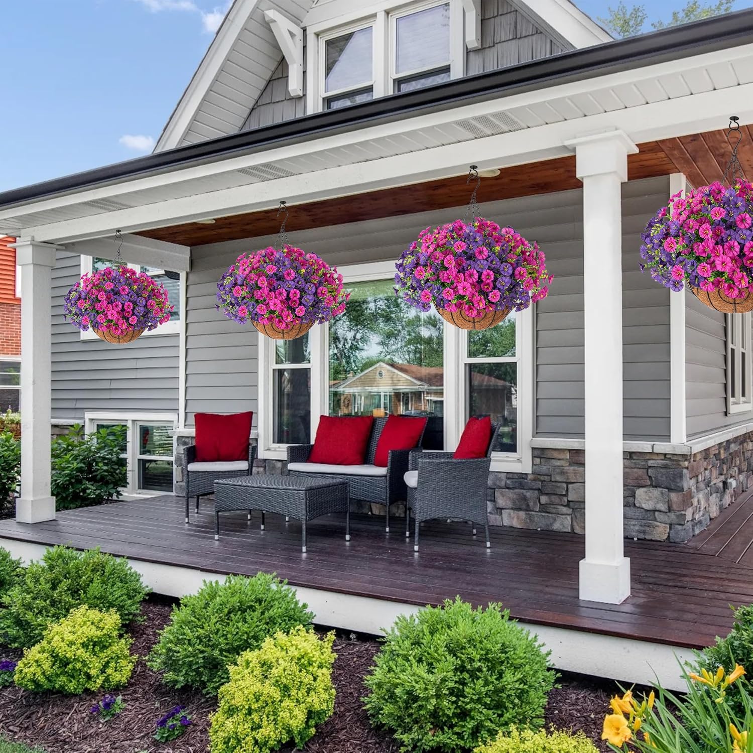 - All-Occasion Decoration: These artificial outdoor hanging flowers basket are perfect for garden, porch, patio, balcony, yard, home, front door, and outside decoration. These artificial hanging flowers with a basket provide the beauty of real flowers without the need for maintenance.