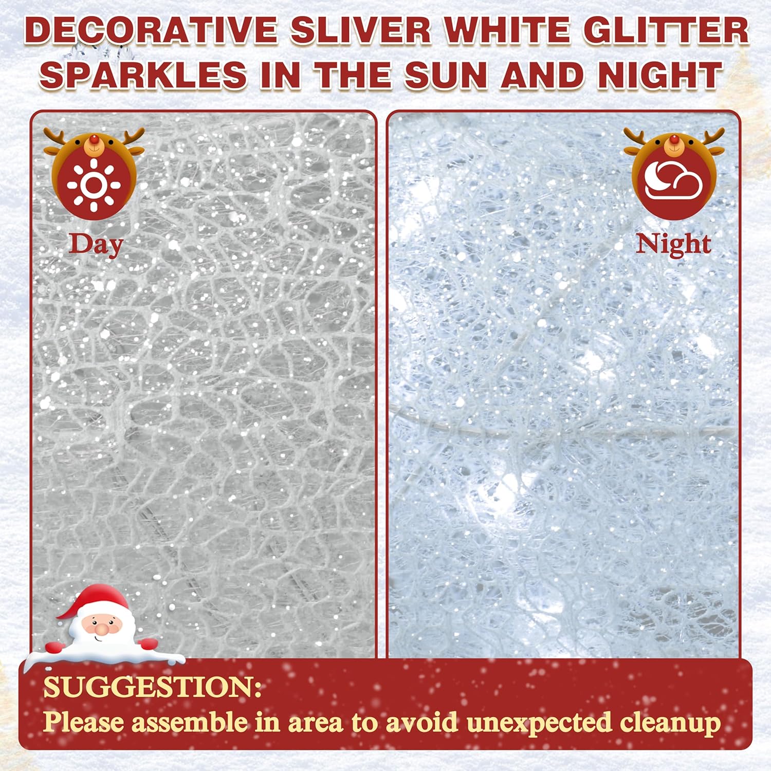 - LED Lights: The pre lit iridescent deer set is installed with dense 200 LED lights beads which make it sparkles colorfully in the sun and night. Observable color may vary by reflecting external light due to the nature of iridescent material