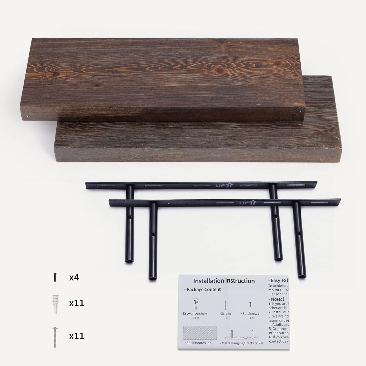 - Easy To Assemble - This floating shelves come with stainless-steel galvanized invisible brackets, toggle bolts for drywall & a simple instruction manual to help you install. The assembly of this wall shelf is very simple, only two boards and some necessary screws and other hardware, and we also have detailed instructions for you to view, you can assemble quickly. Please contact our product support team when you have any questions.