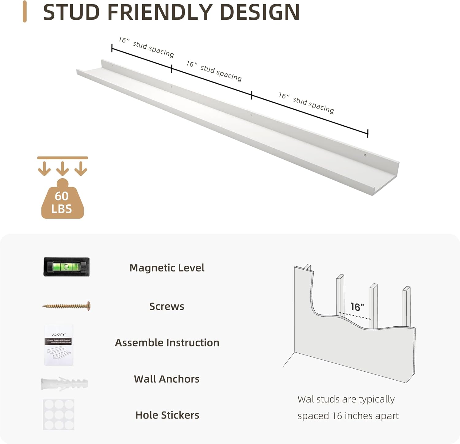 • 【Picture Wall Collage Decor】 Got a collection of photos but not sure how to display them? Our large-sized picture ledge shelves are the perfect solution! Safely store and showcase a variety of photo frames in one place, without worrying about them falling