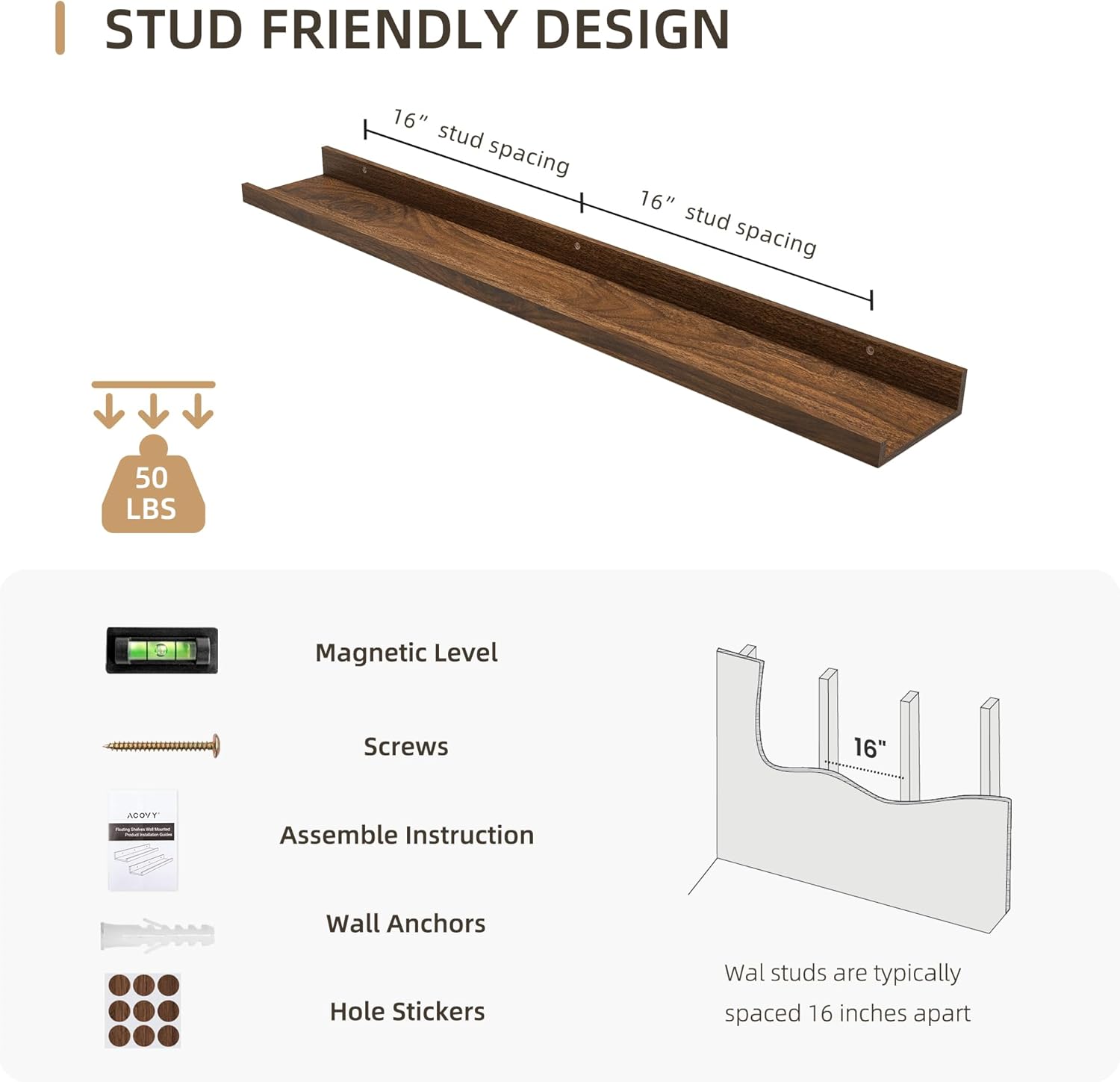 Picture Ledge Shelf, Wood Floating Shelves Set of 2, 36 inch Picture Ledge Shelves, Photo Ledge Nursery Book Shelves Wall Mounted for Living Room Kids' Room Bedroom, Color Walnut