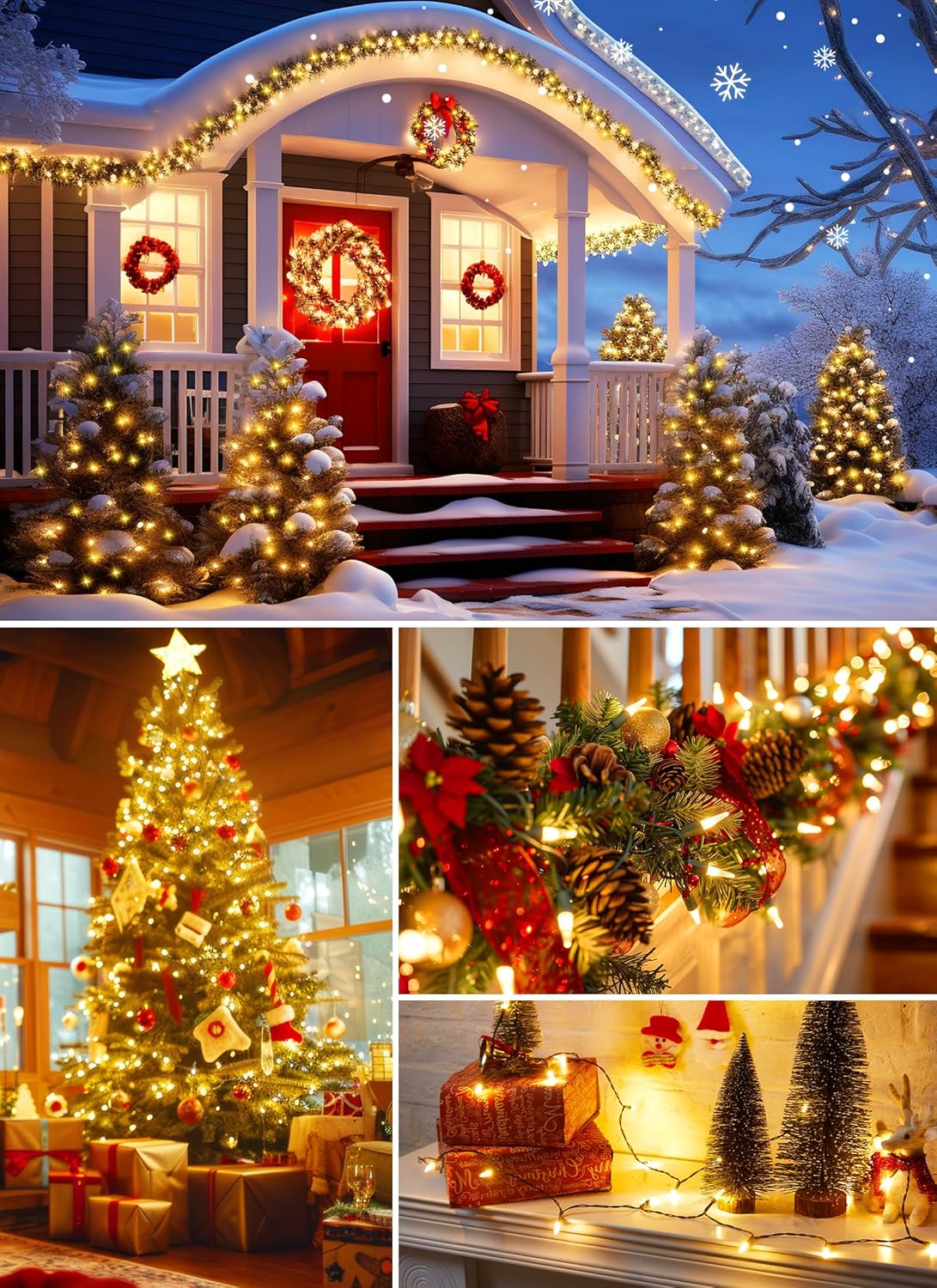 - Soft Warm White Light: The indoor use mini Christmas lights set comes with eye protection soft warm white light and green cable, which is a perfect choice for the tree, bedroom, balcony, garden, Xmas, indoor, outdoor, birthday, wedding, party, Christmas and other festival decoration. These 360ΒΊ clear twinking string lights can not only provide good lighting effects but also bring a more romantic festival atmosphere.