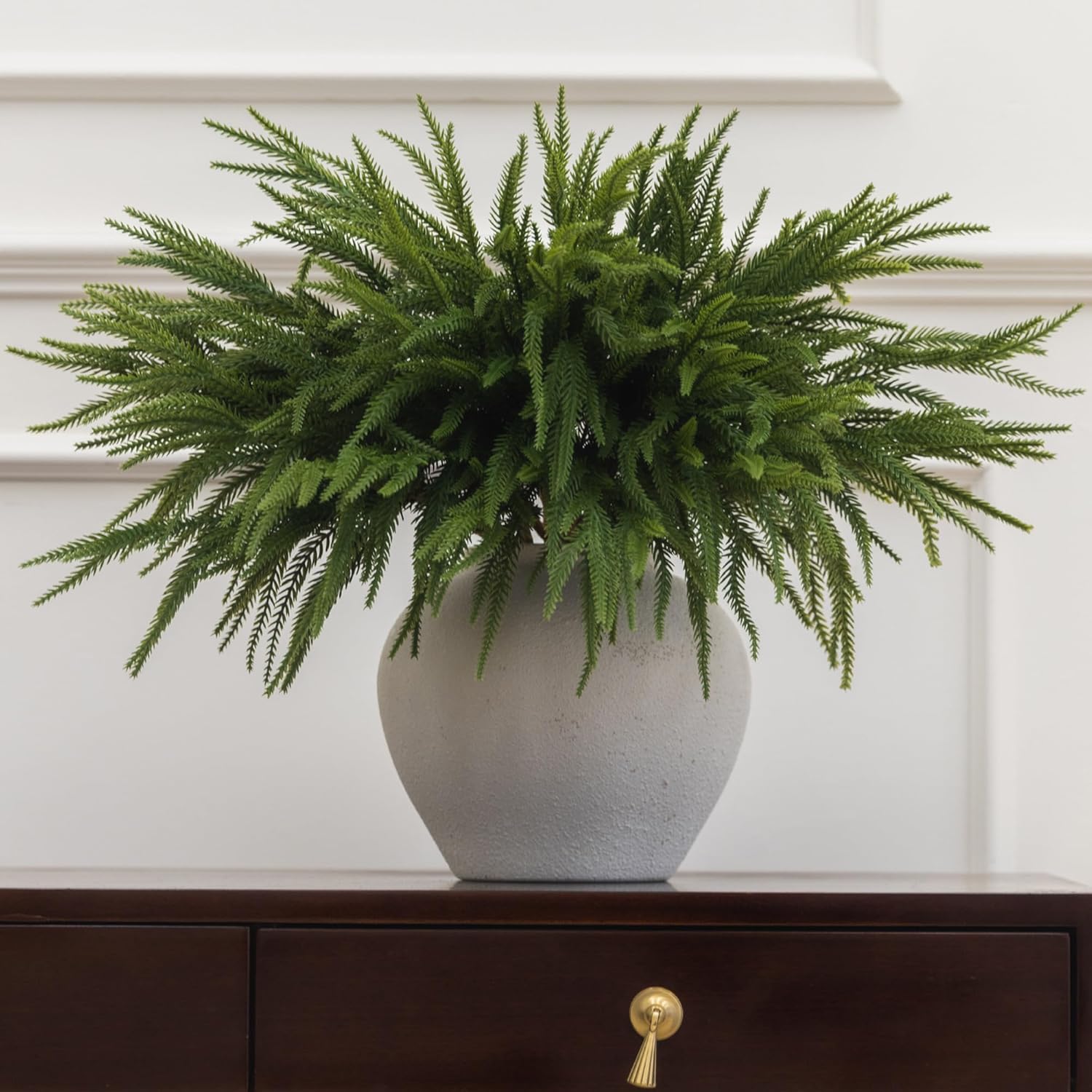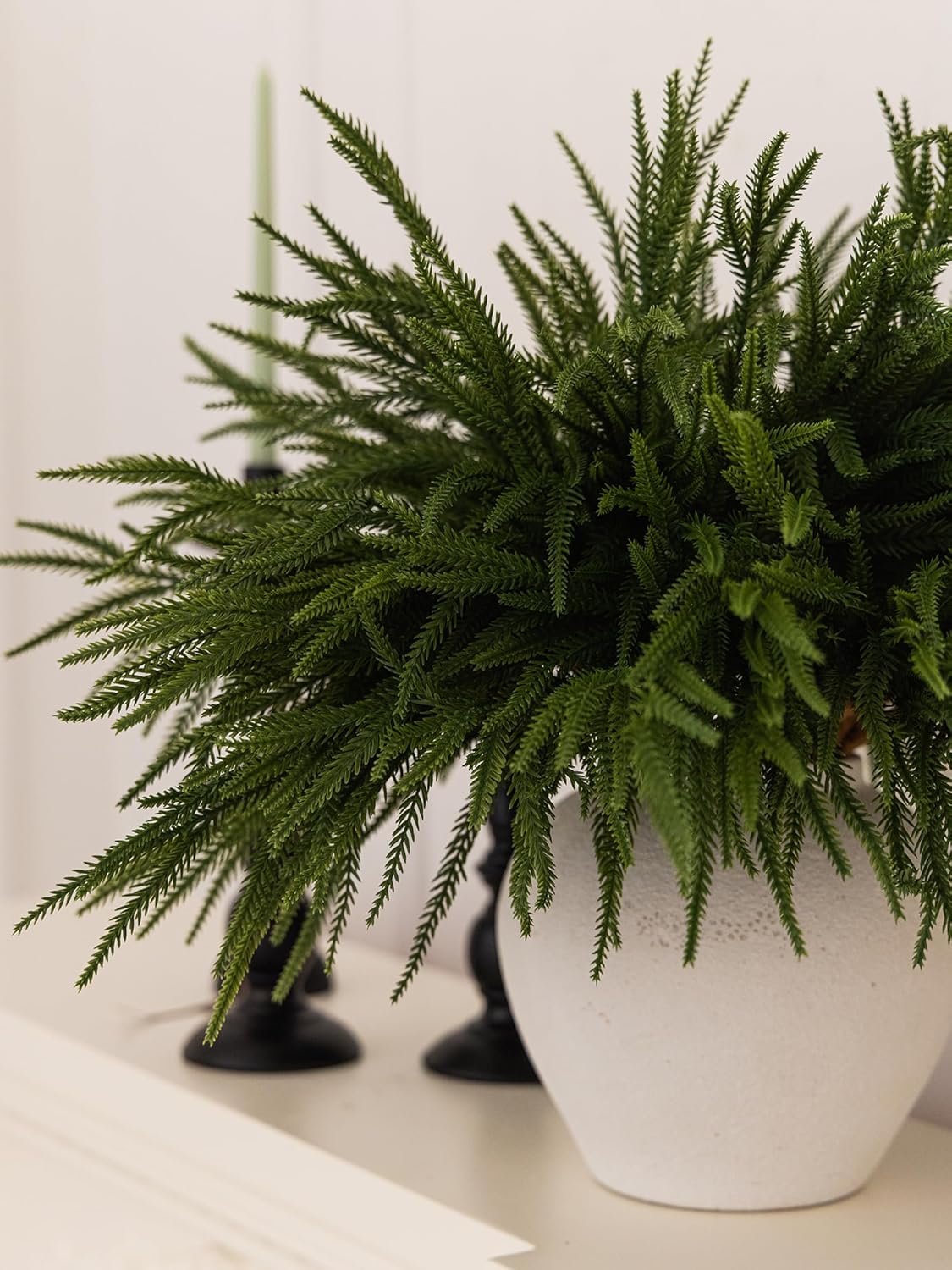 • 【Premium Quality and Natural Appearance】Crafted from high-quality PE, these branches mimic the natural green color of real Norfolk Pine, offering both aesthetic beauty and durability. After opening the package, simply let the product air out for a few hours to eliminate any initial odor, ensuring a better experience. Note: Vase not included.