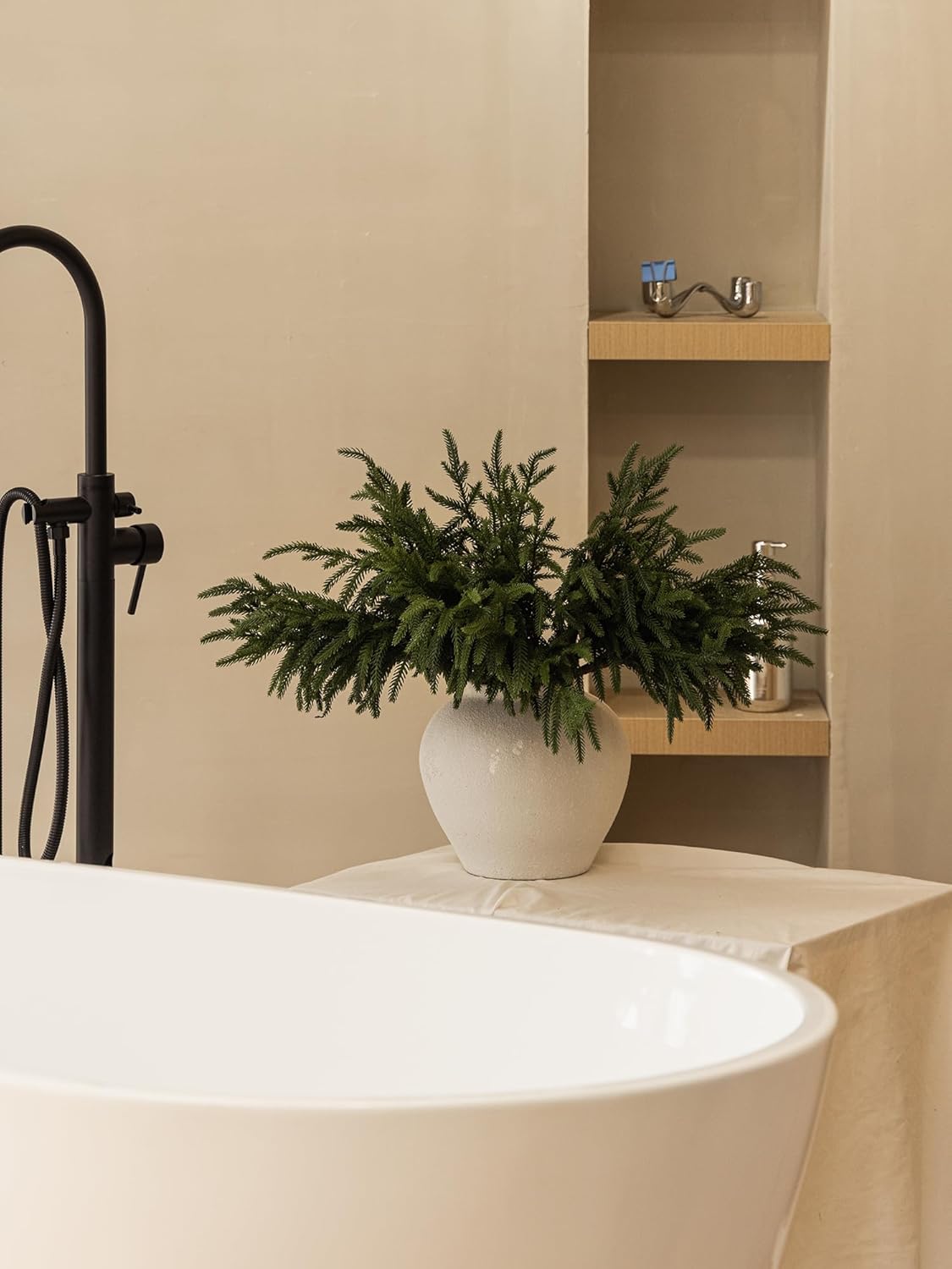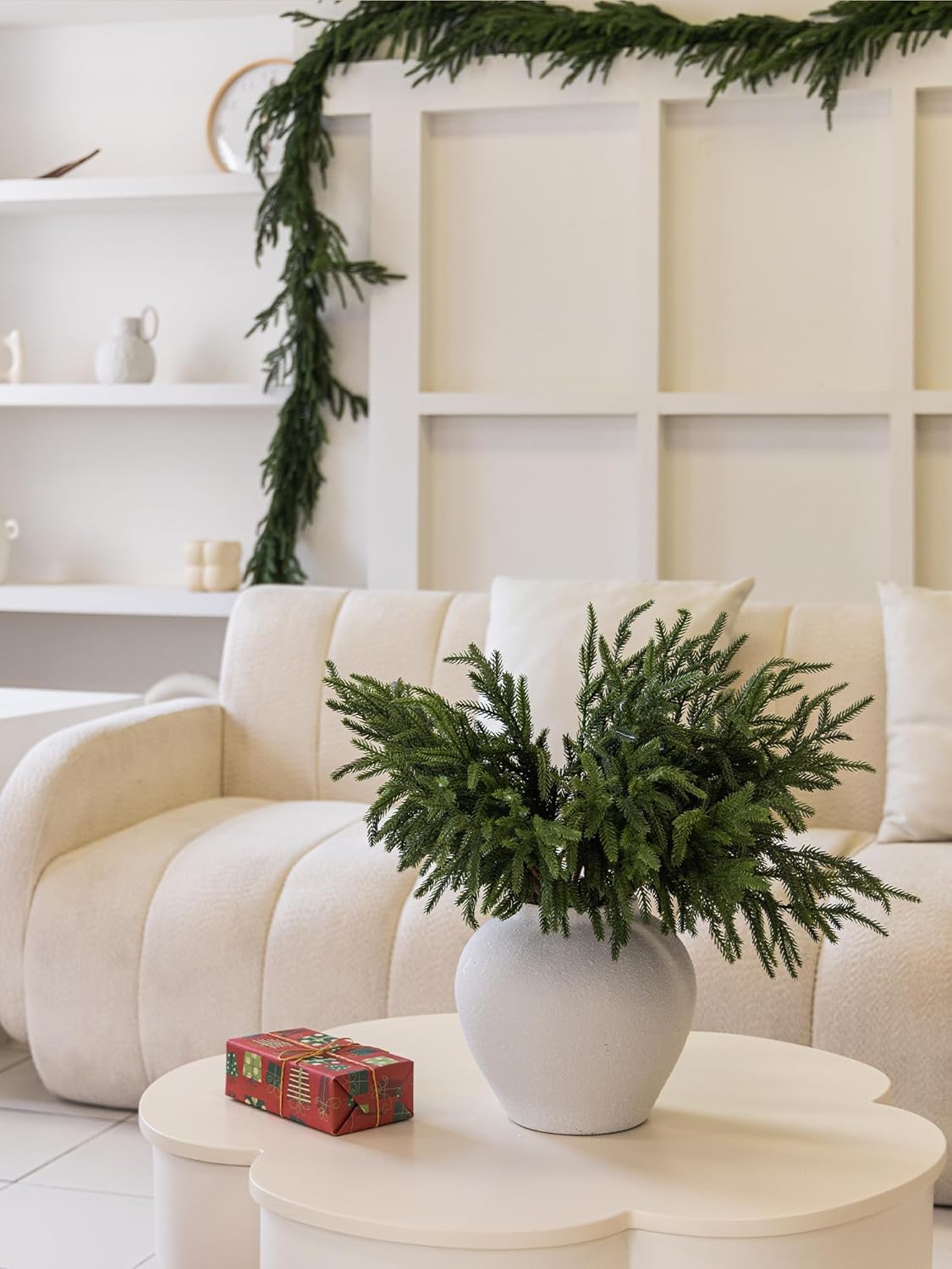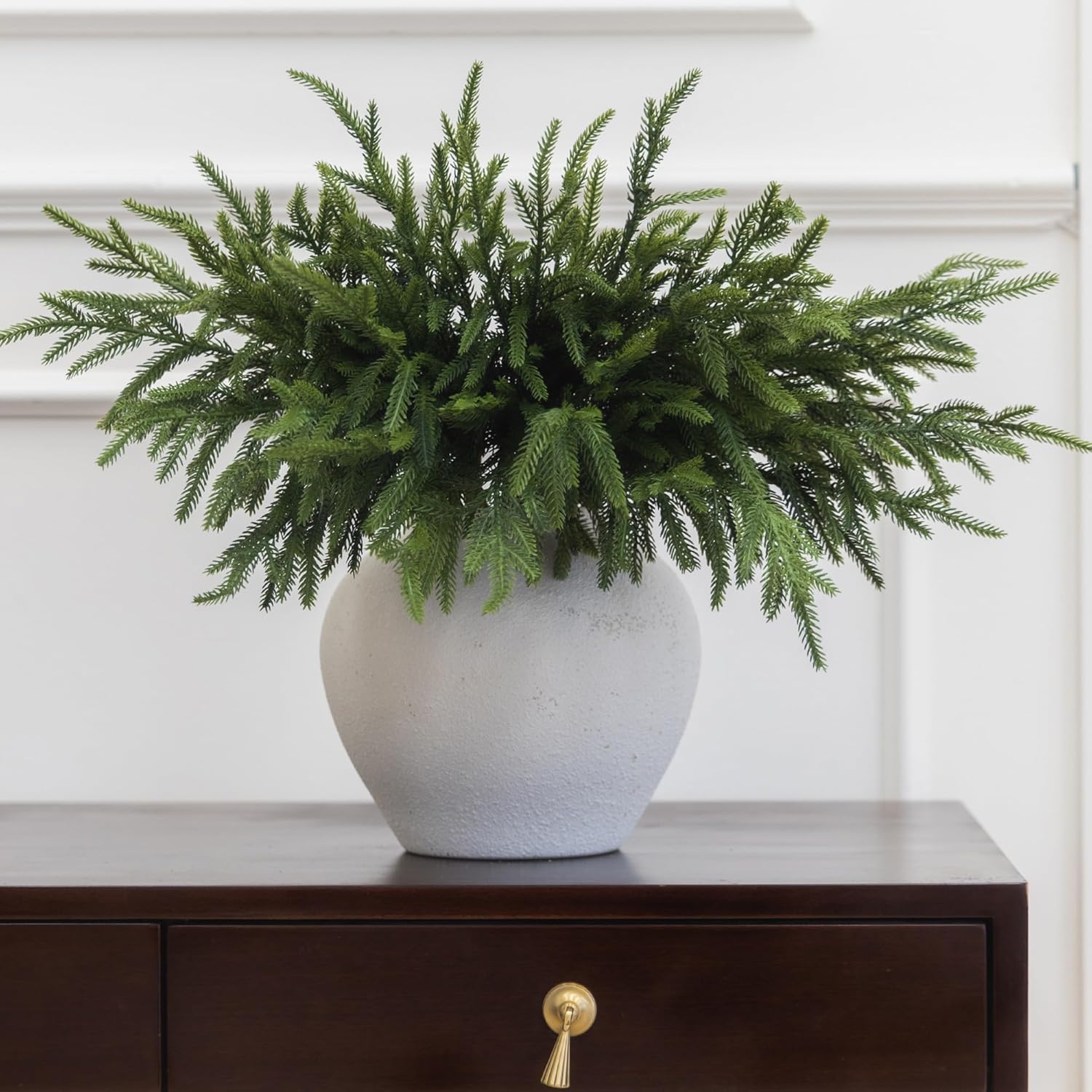 - 【Premium Quality and Natural Appearance】Crafted from high-quality PE, these branches mimic the natural green color of real Norfolk Pine, offering both aesthetic beauty and durability. After opening the package, simply let the product air out for a few hours to eliminate any initial odor, ensuring a better experience. Note: Vase not included.