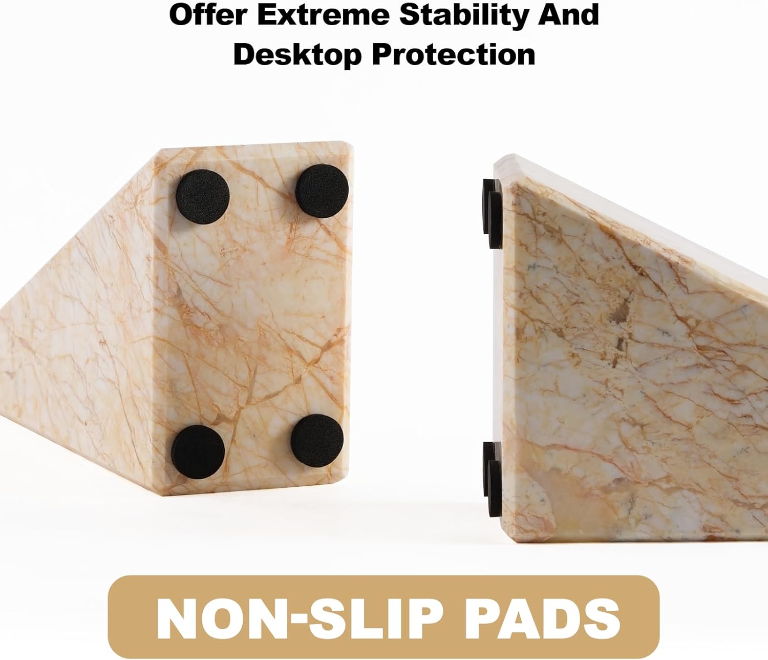 - NATURAL MATERIAL: Heavy duty bookend weigh 7LB and are equipped with 4 non-slip pads to effectively minimize scratches on your desktop. Book stopper makes your reading time more relaxing and ensure the safety of you and your family with this marble beookend.
