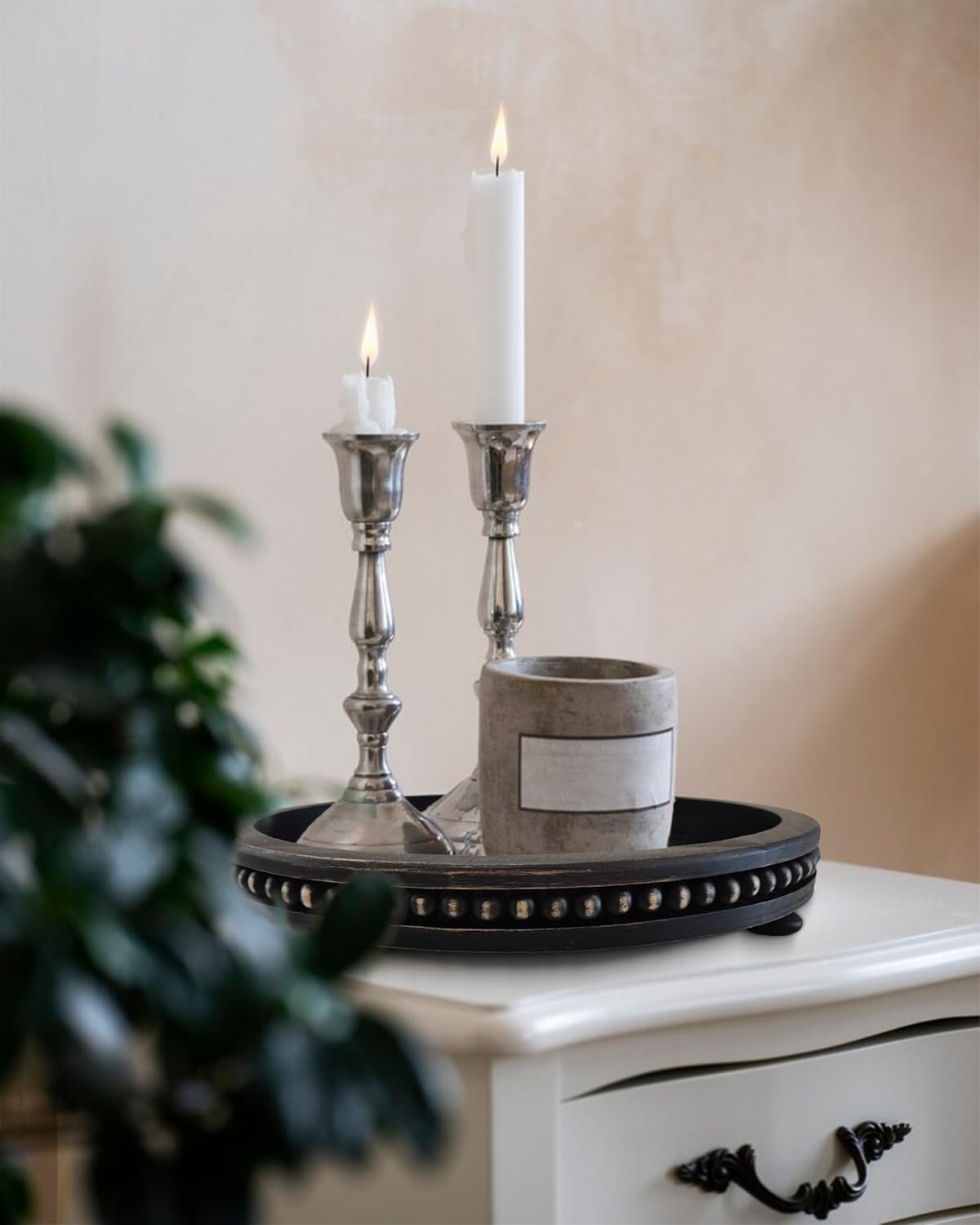 - Stylish Design: The classic round shape, beaded design and natural wood finish of this wood tray complement any decor style. Whether you're looking to add a touch of sophistication to your living space or simply want a functional yet stylish piece, this decor tray fits the bill.