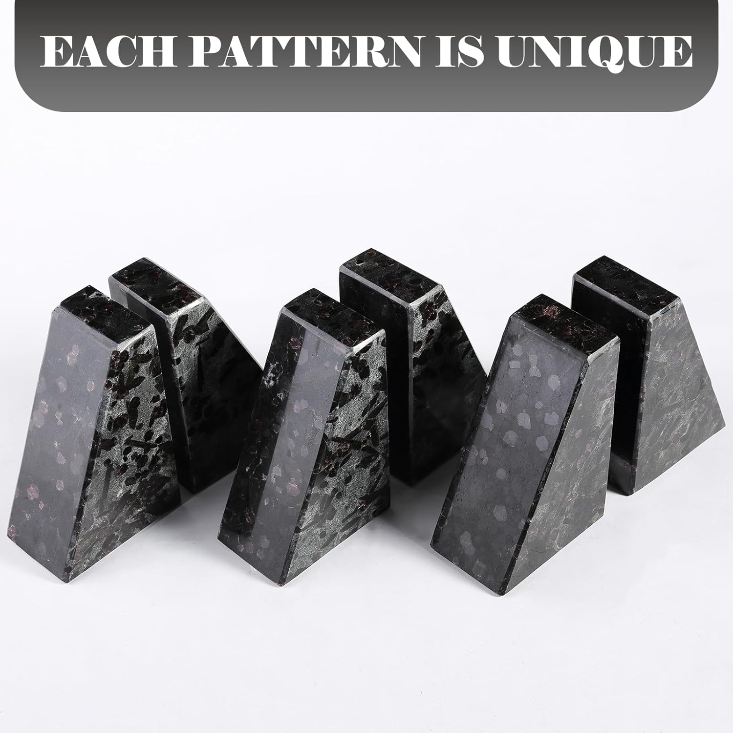 - NATURAL MATERIAL: The heavy duty bookends weight 7LB and are equipped with 4 non-slip pads to effectively minimize scratches on your desktop. Make your reading time more relaxing and ensure the safety of you and your family with this stone book ends for shelves.