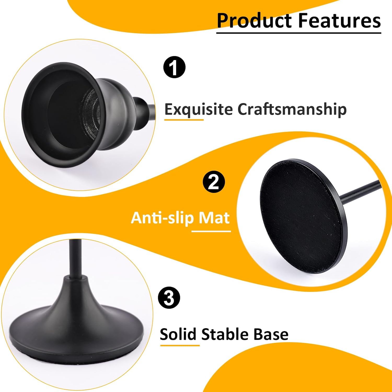 - Robust and Secure Design: Our candlestick holders feature a slender yet sturdy frame with a solid base, providing a substantial feel. The bottom of each tall taper candle stick holder is lined with non-slip velvet, protecting your surfaces from scratches and damage. Their substantial weight of the taper candlestick holders provides added security, so you can confidently display these tall candle holders without worry.