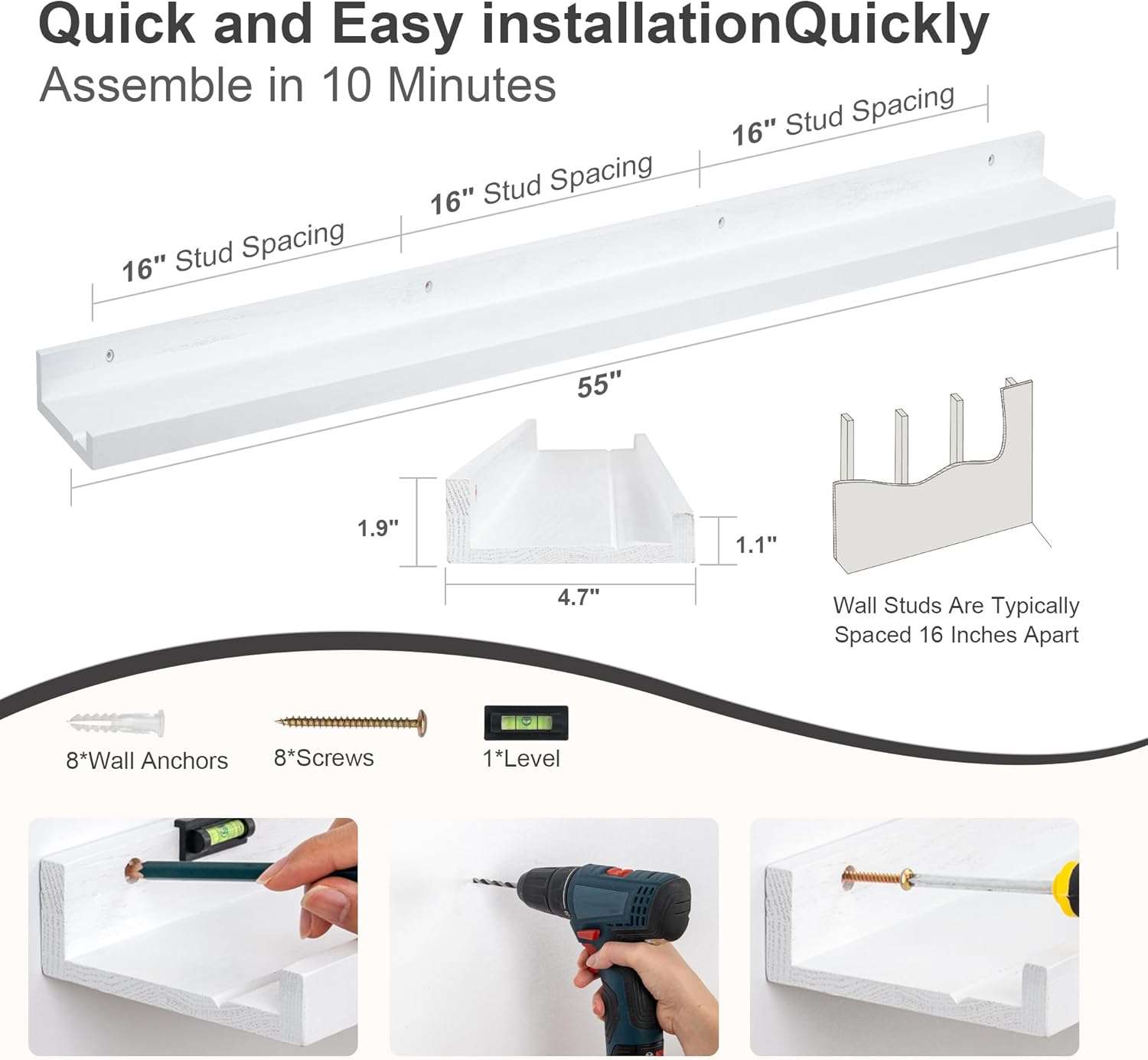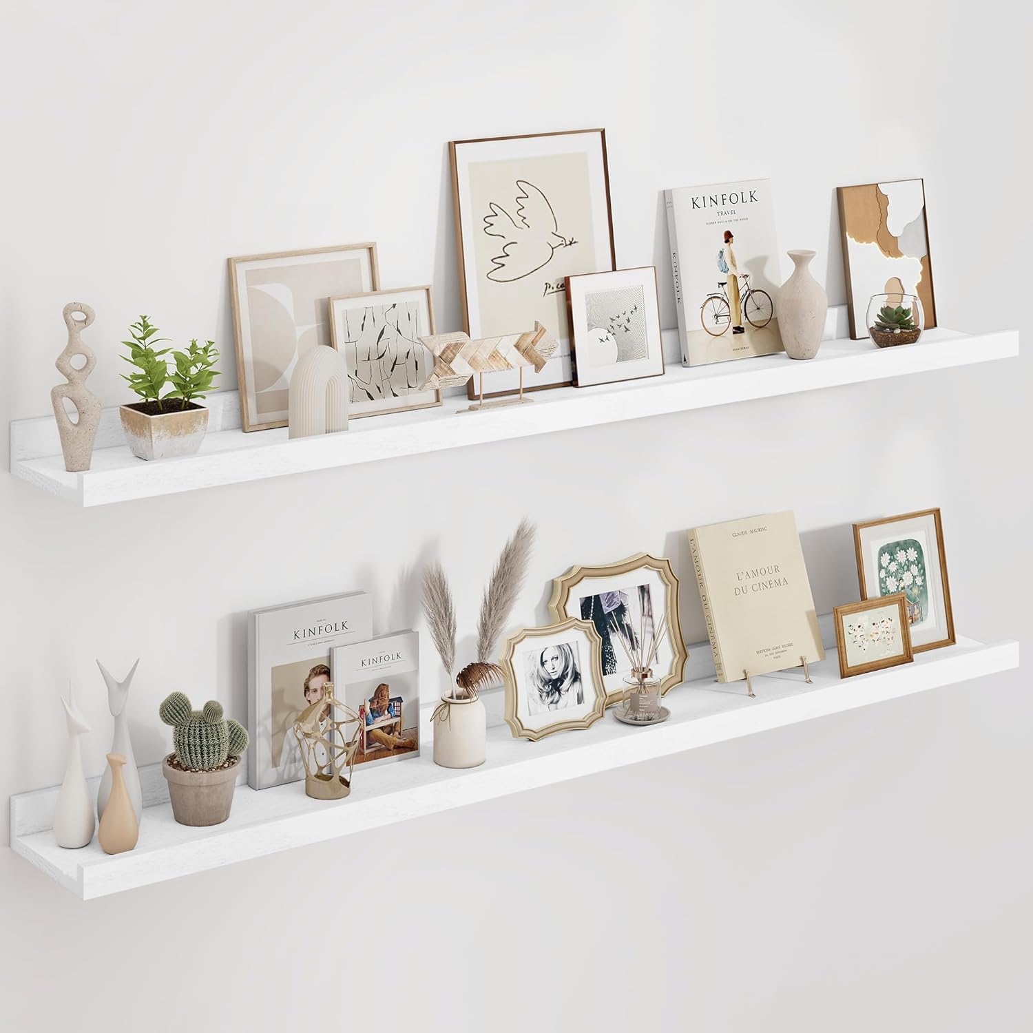 - Multi-Functional: Get creative and find more functions other than the long picture ledge shelf. FLYJOE storage ledge shelves can act as a kids' bookshelf, display shelf for collectibles figures, and more.
