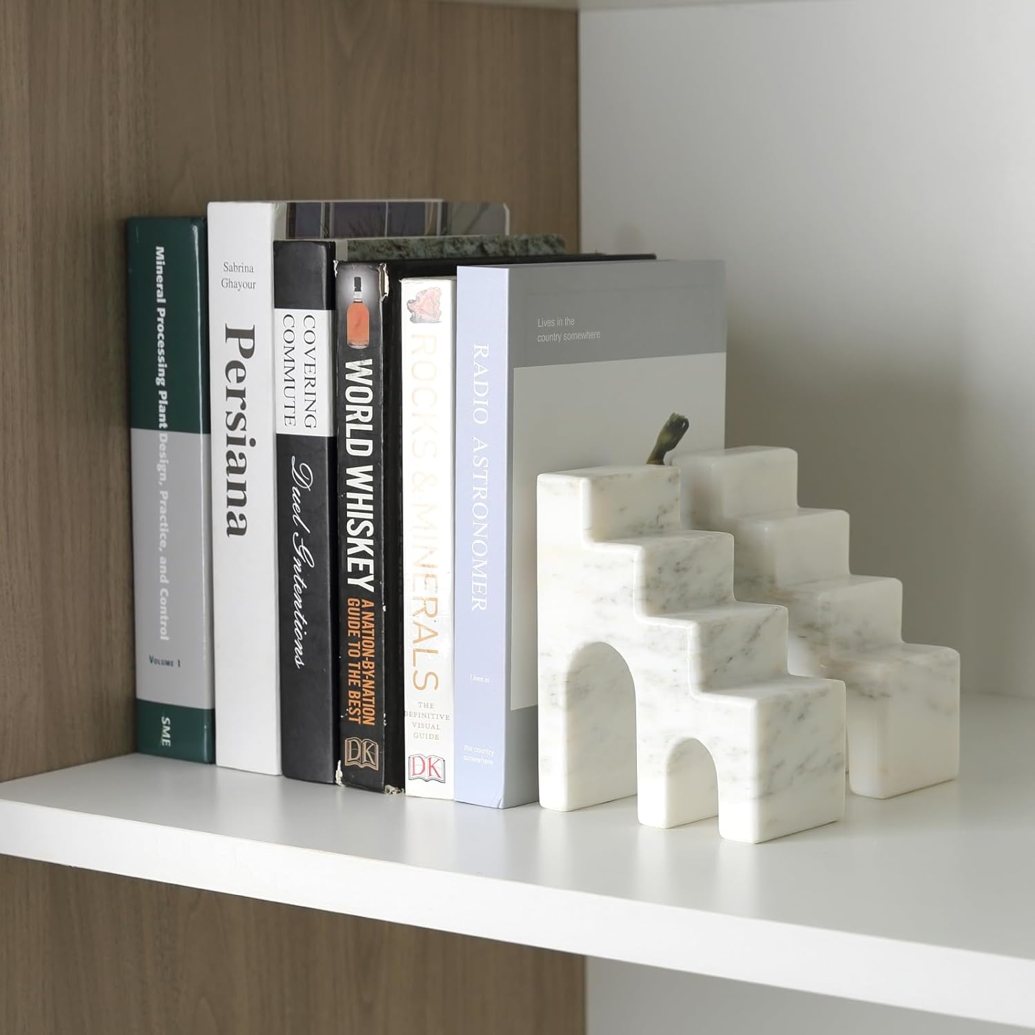 - Durable and Practical ---- The marble bookends are great for organizing your books, CDs, DVDs, and magazines, these book stoppers will make your reading time better and your bookshelf more tidy and organized. The aesthetic book ends also maintain long-term stability and will not be deformed by external factors, ensuring that your books are always securely placed.