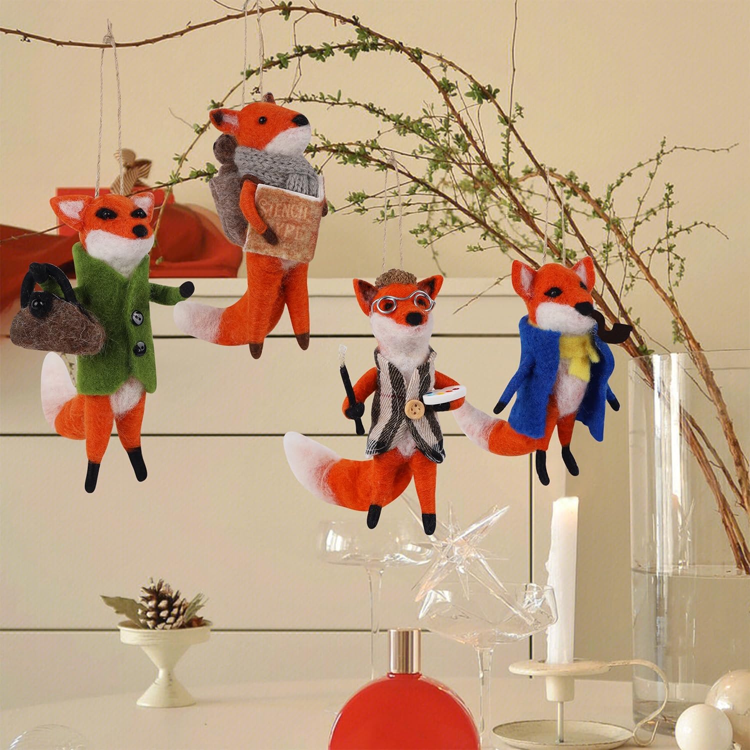 - CHRISTMAS FELT MR. FOX: This set includes four charming felt Mr. Fox ornaments, each showcasing unique expressions and poses, perfectly capturing the whimsical spirit of the holidays and adding a touch of cuteness to your Xmas decor. The size approx. 3" X 3.9" X 5". Notes- It is for decoration, not a toy for children