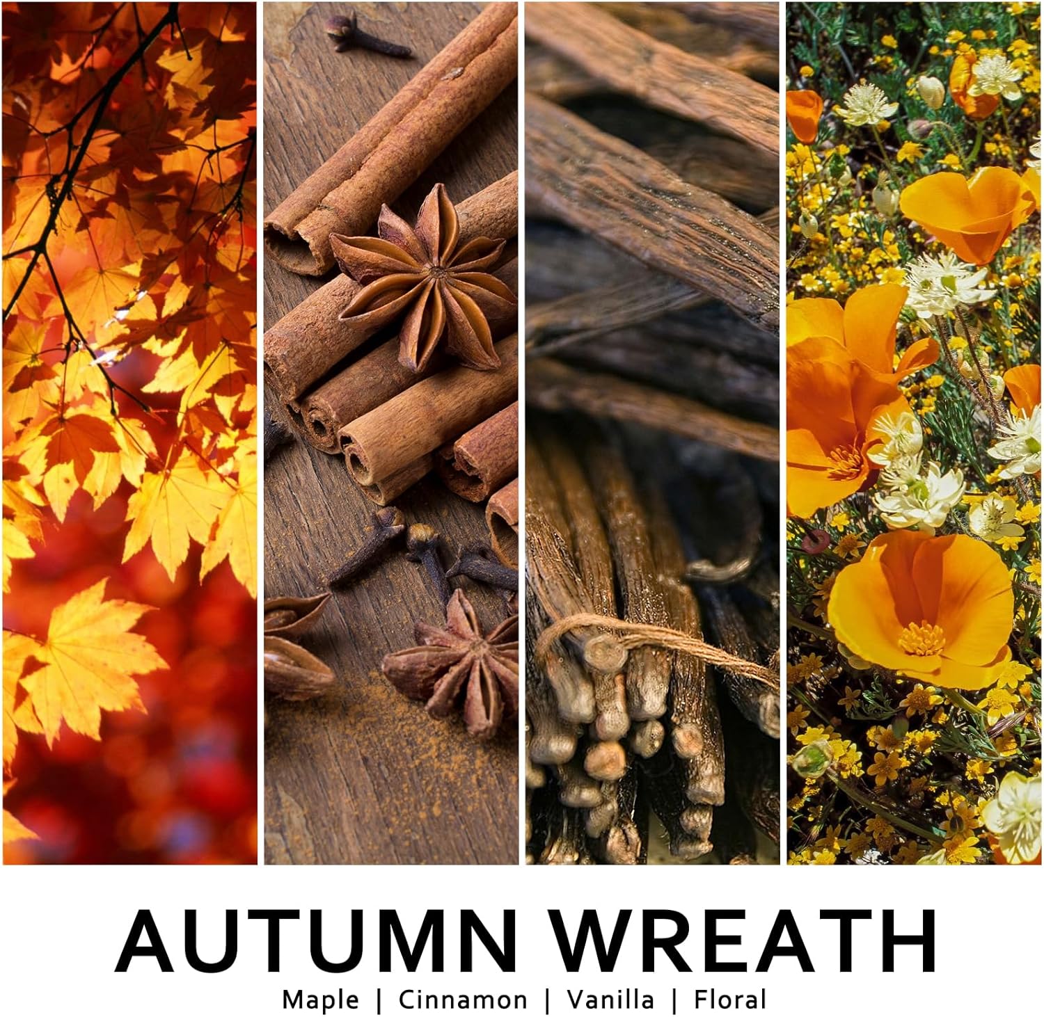 Autumn Wreath Fall Candles for Home Scented Natural Soy Wax Non Toxic Birthday Candles Scented Candle 40 Hours Bruning 9oz Aromatherapy Candle Gifts for Women Halloween Birthday Thanksgiving