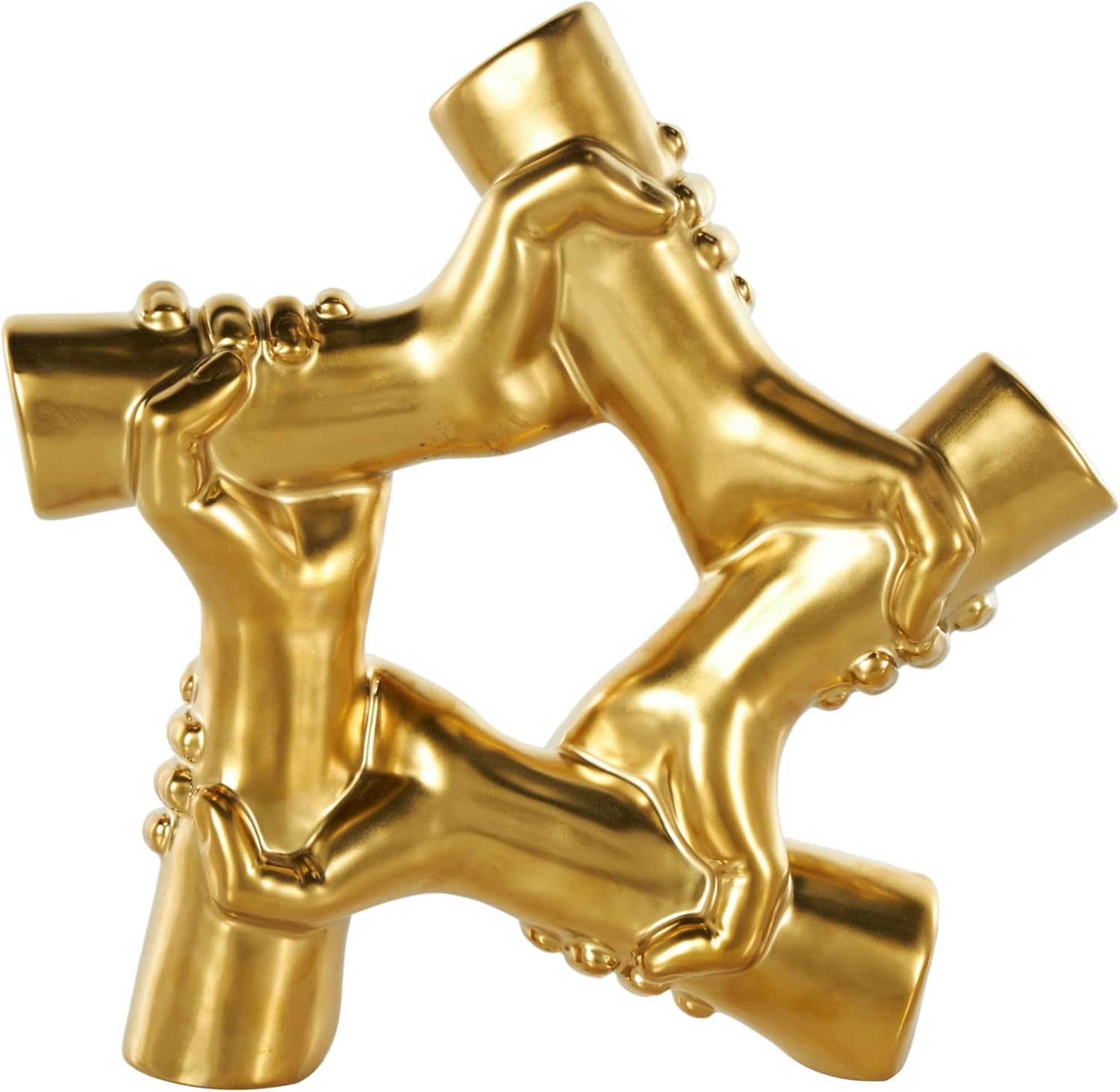 Deco 79 Ceramic Hands Decorative Sculpture Gripping Home Decor Statue, Accent Figurine 13" x 4" x 13", Gold
