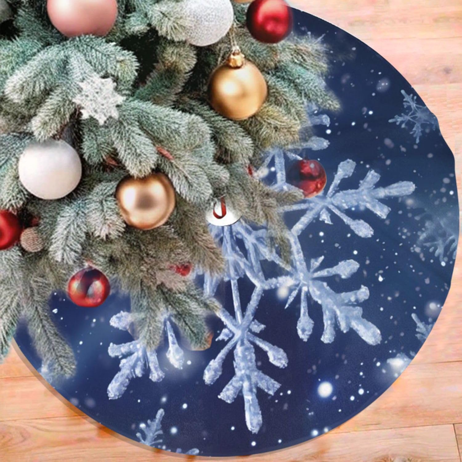 48" Blue Snowflakes Christmas Tree Skirt Large Tree Mat Base Cover for Xmas Festive Holiday Party Decoration Ornaments