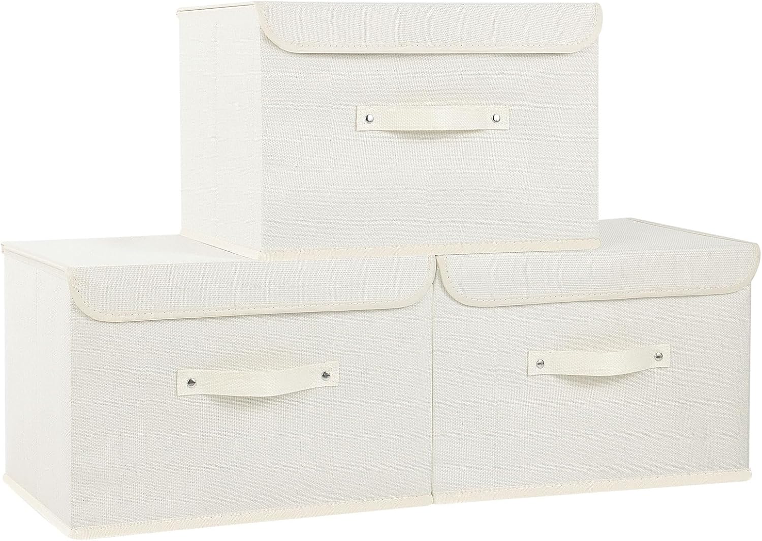 Fabric Storage Bins Cube Organizers with Flip-Top Lid and Handles,Storage Boxes for Organizing Home,Office,and Closet,Beige,3 Pack 15 x 9.8 x 9.8 in