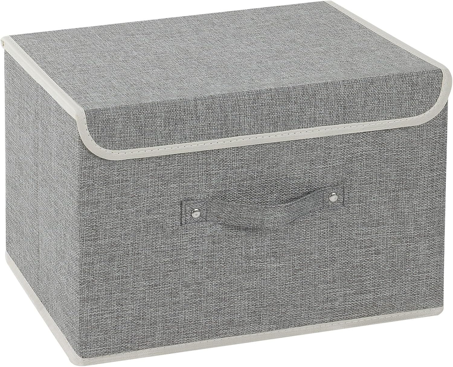 Storage Boxes, Collapsible Storage Bins with Lids, Cotton and linen cloth Storage Baskets with Handle, for Books, Closet, Bedroom, Home, 15x9.8x9.8 in, Grey