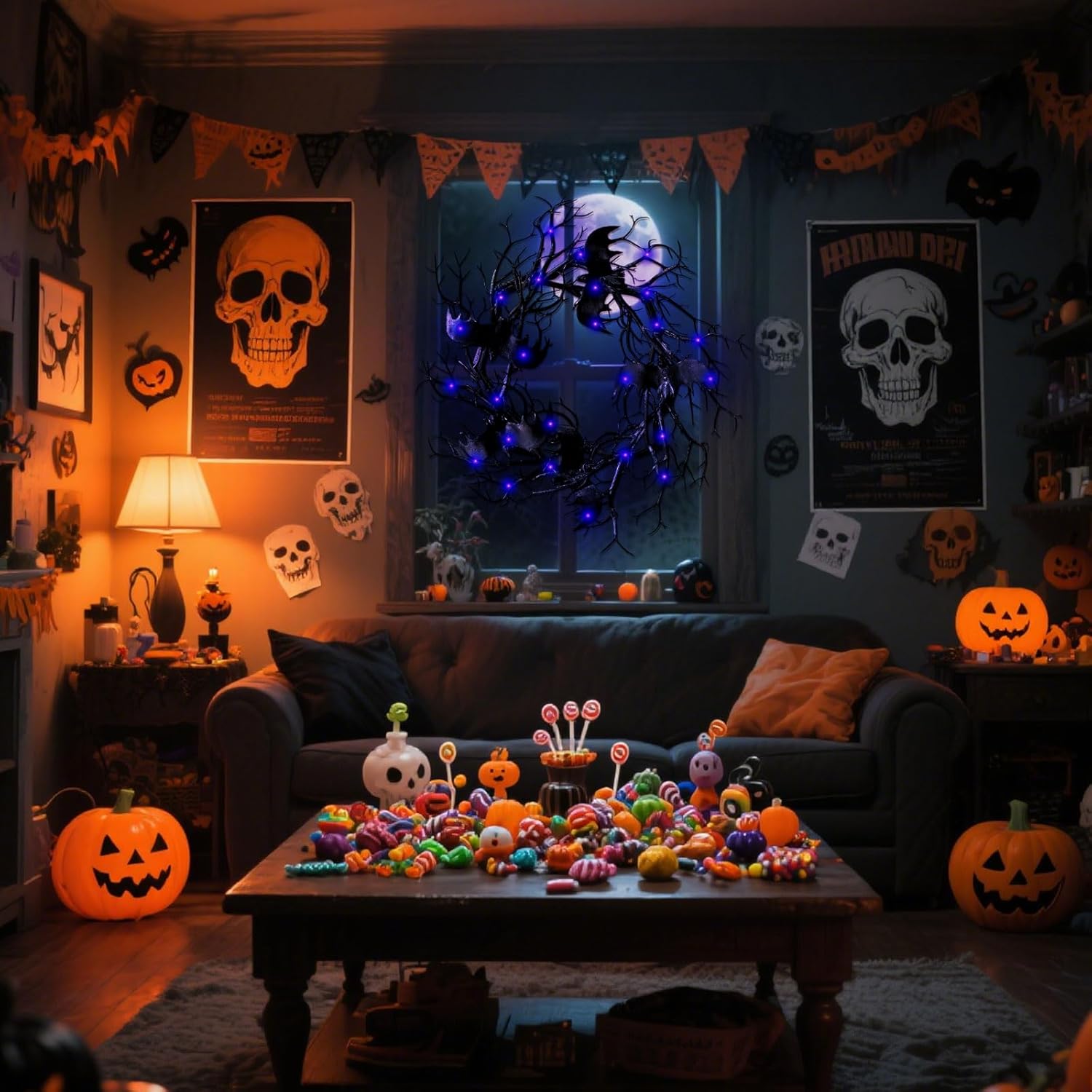 - Light Up Your Halloween: Lights surround the wreath, emitting a faint ghostly light in the dark. They are very vivid emit a terrifying mood, creating an terror atmosphere