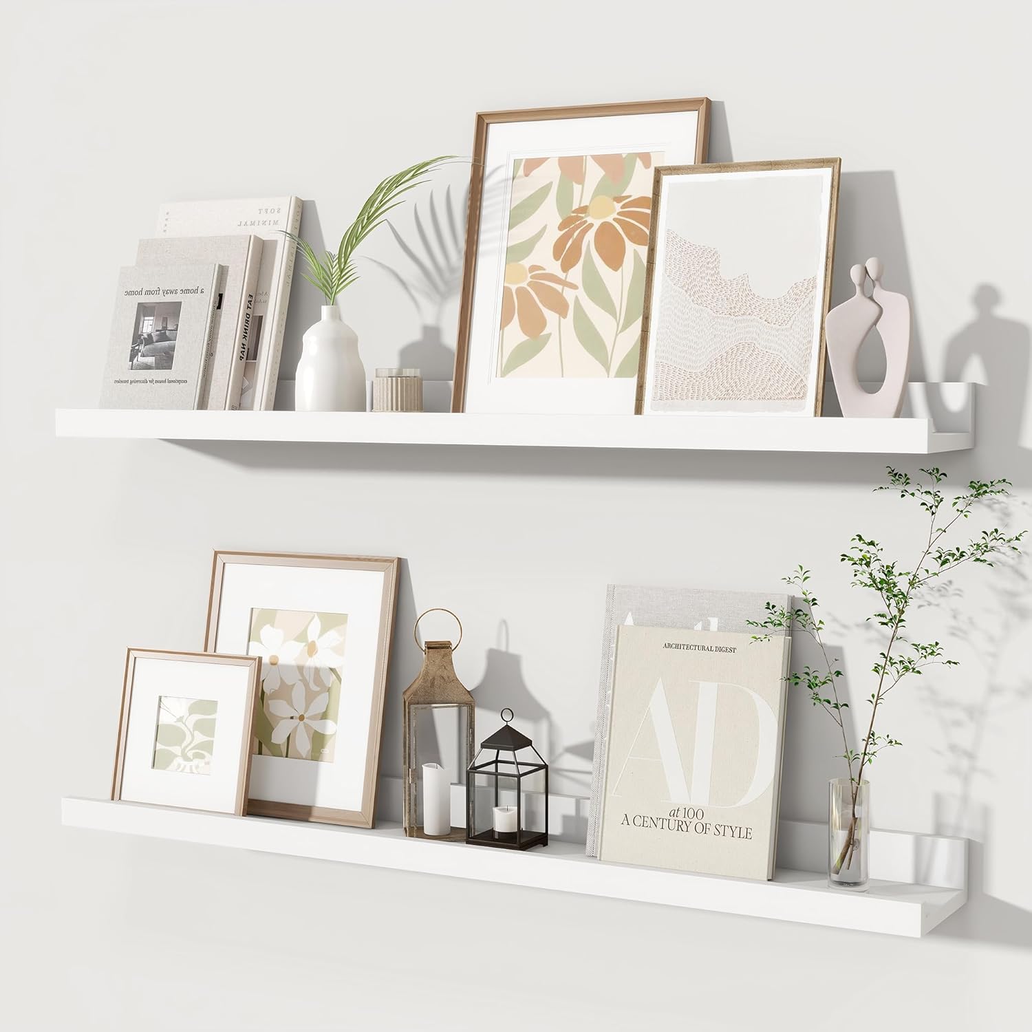 - Maximized Storage Space & Rich Color Selection: Our U-shaped floating shelves provide ample room for displaying picture frames, books, plants, and decorative items while enhancing your home decor. Available in five sizes and four trendy colors. The 3.5 inch width makes it especially suitable for use as a picture ledge shelf.