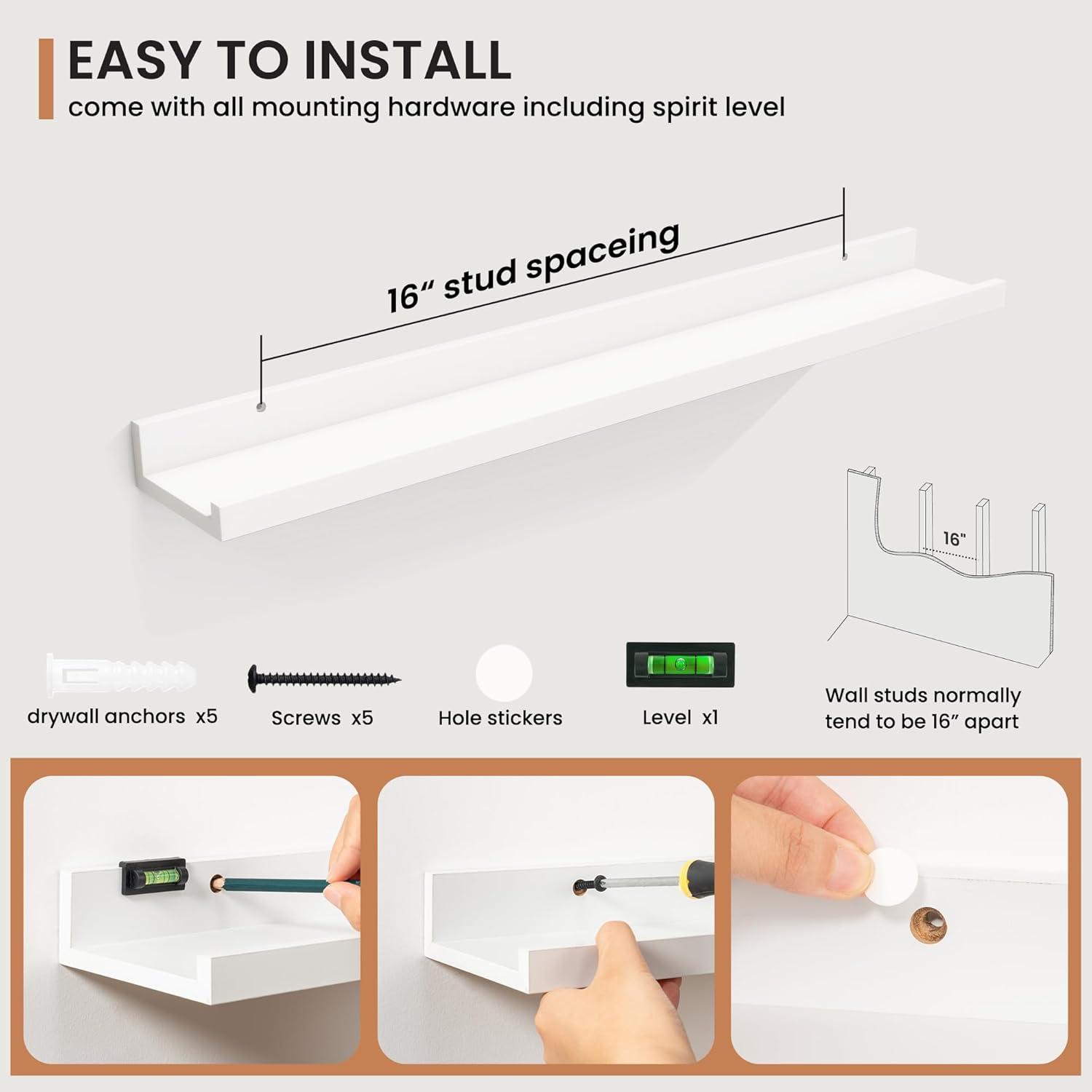 - Effortless Installation: Each shelf comes with pre-drilled holes and all necessary hardware, making installation quick and easy, so you can enjoy your new decor in no time.